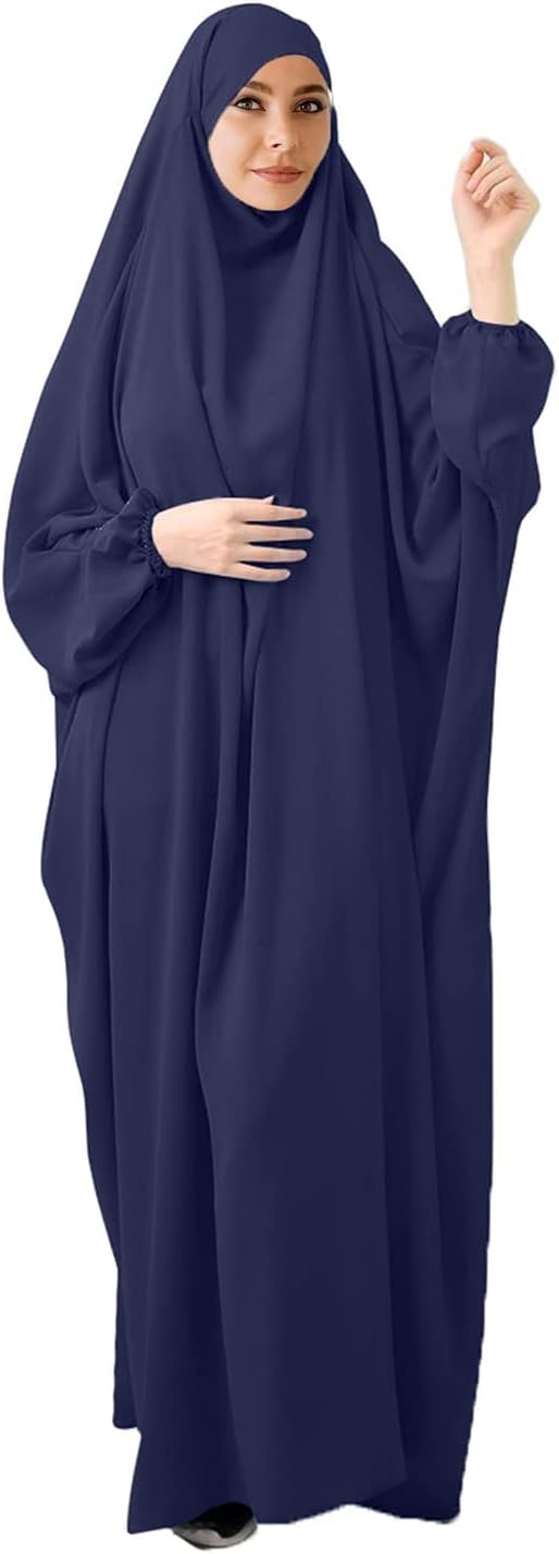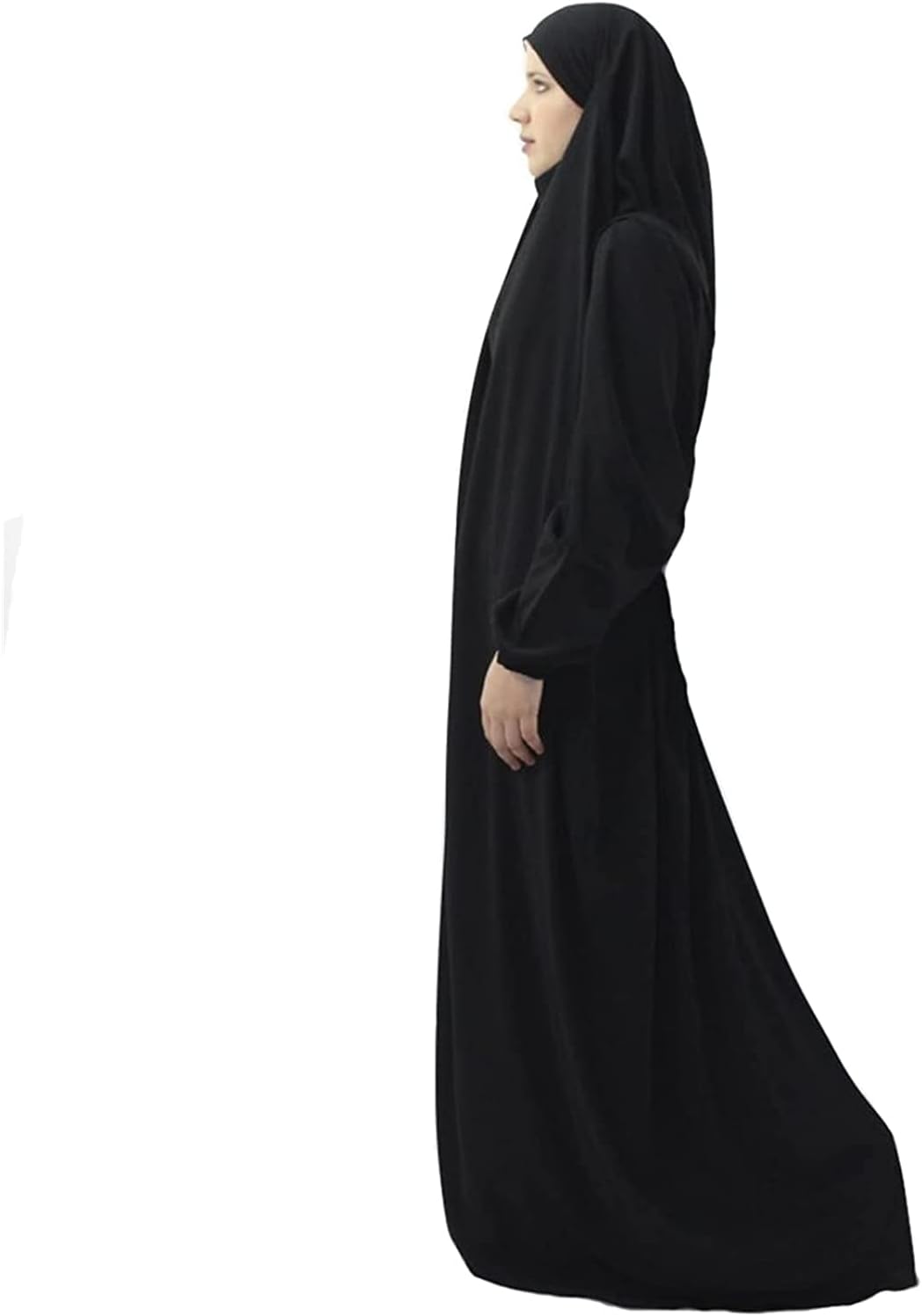 Women's Solid Abaya Muslim Plus Size One-Piece Prayer Dress Islamic Maxi Kaftan with Hijab Dubai Full Length Dress