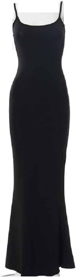 Bodycon Maxi Dress for Women Solid Color Spaghetti Strap Slim Fit Long Dresses Summer Slip Dress