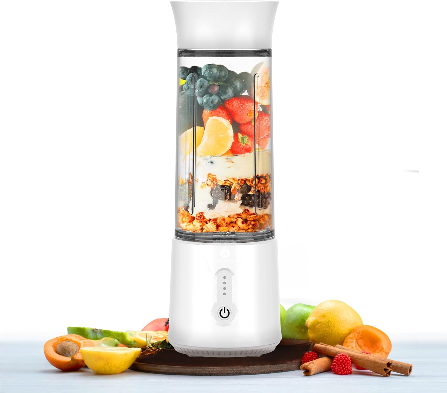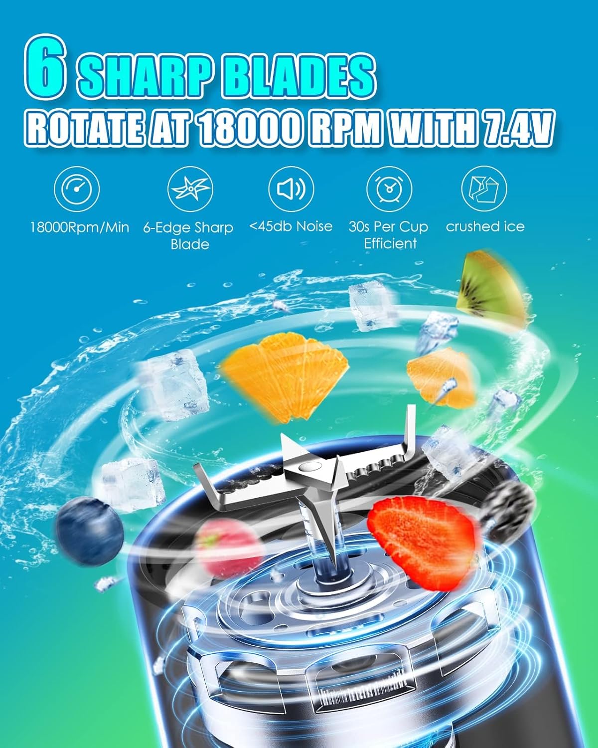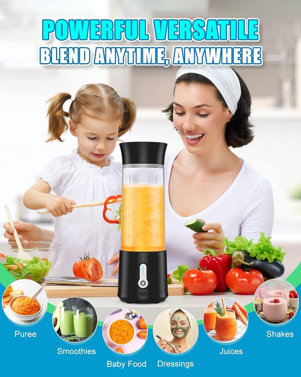 【Multi-Function Smart Blender】This portable juicer smoothie blender is great for making nutritious single-portion smoothies, milkshakes, juice blends, mix fruits, vegetable juice, baby food and other foods. You can drink nutritious juices, milkshakes or smoothies wherever you want. The blender mixer portable detects and determines the duration needed to blend nutritious smoothies.