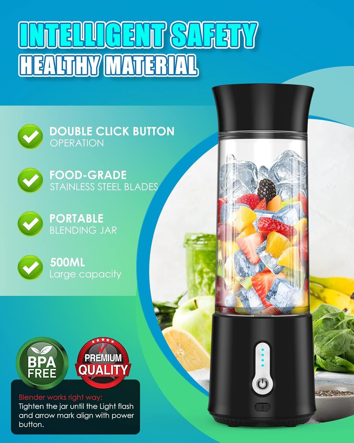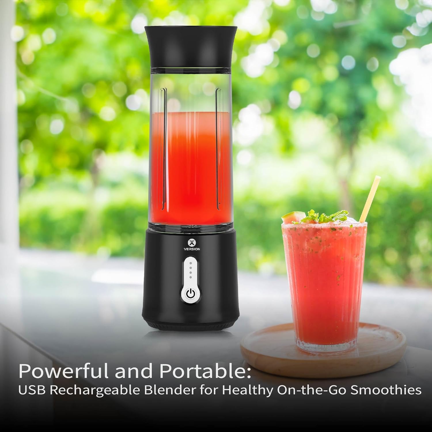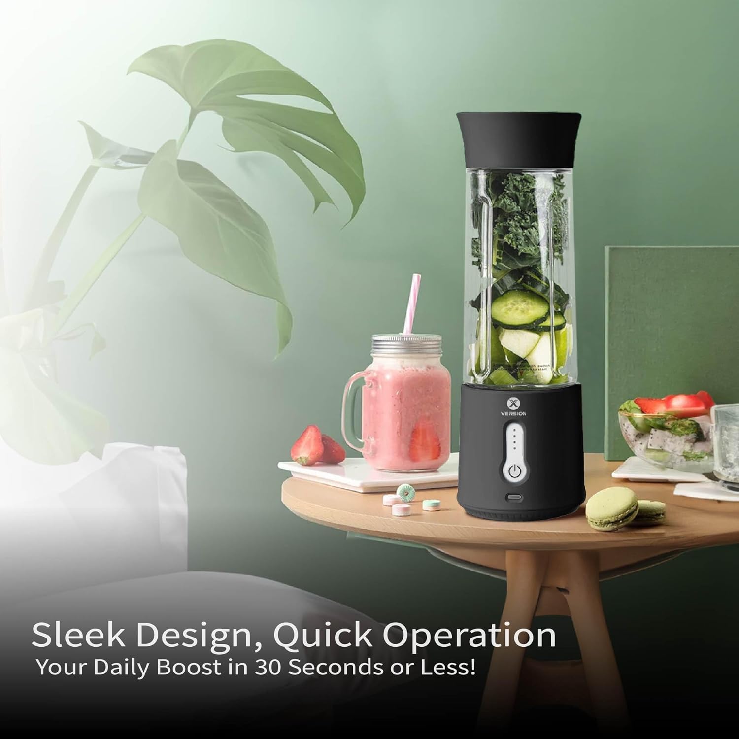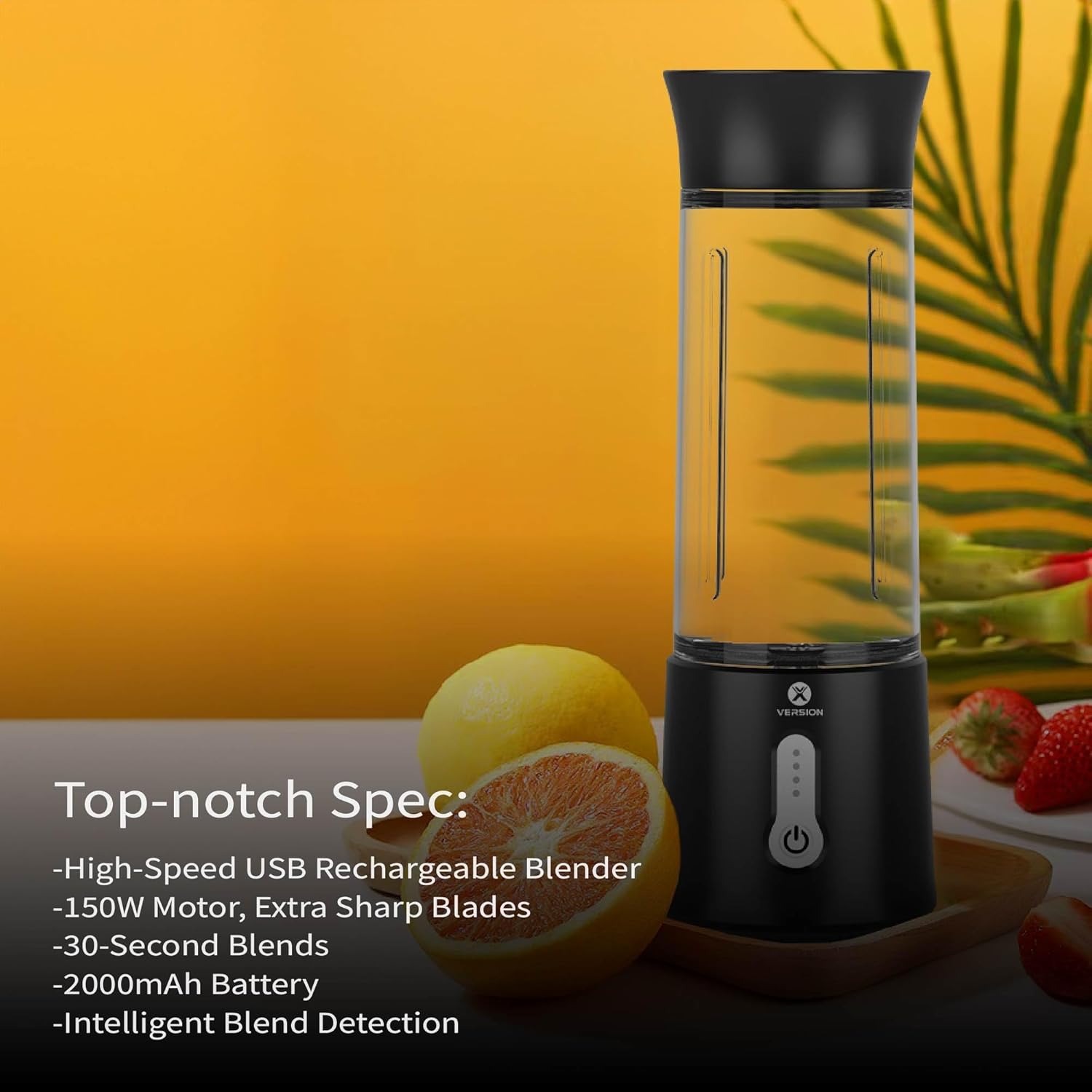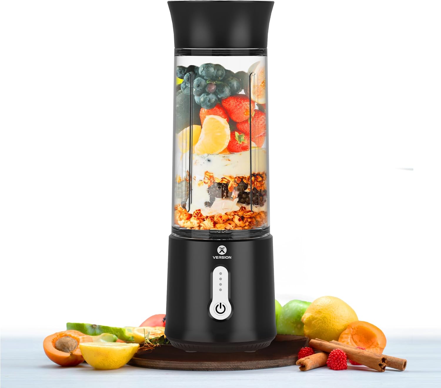 500ML XVersion Blender Wireless Portable Blender Smoothie Maker Juicer Blender Mixer Shakes with High Speed 6-Blades for Office,Gym,Outdoor,Home,Travel,Baby Food (Black, Mini)