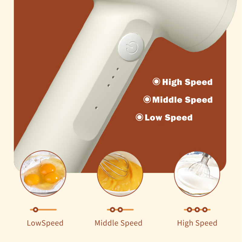 Electric Egg Beater With 2 Wire Beaters Portable Food Blender Whisk 3 Speeds Handheld Food Mixer ,USB Rechargeable Handheld Egg Beater