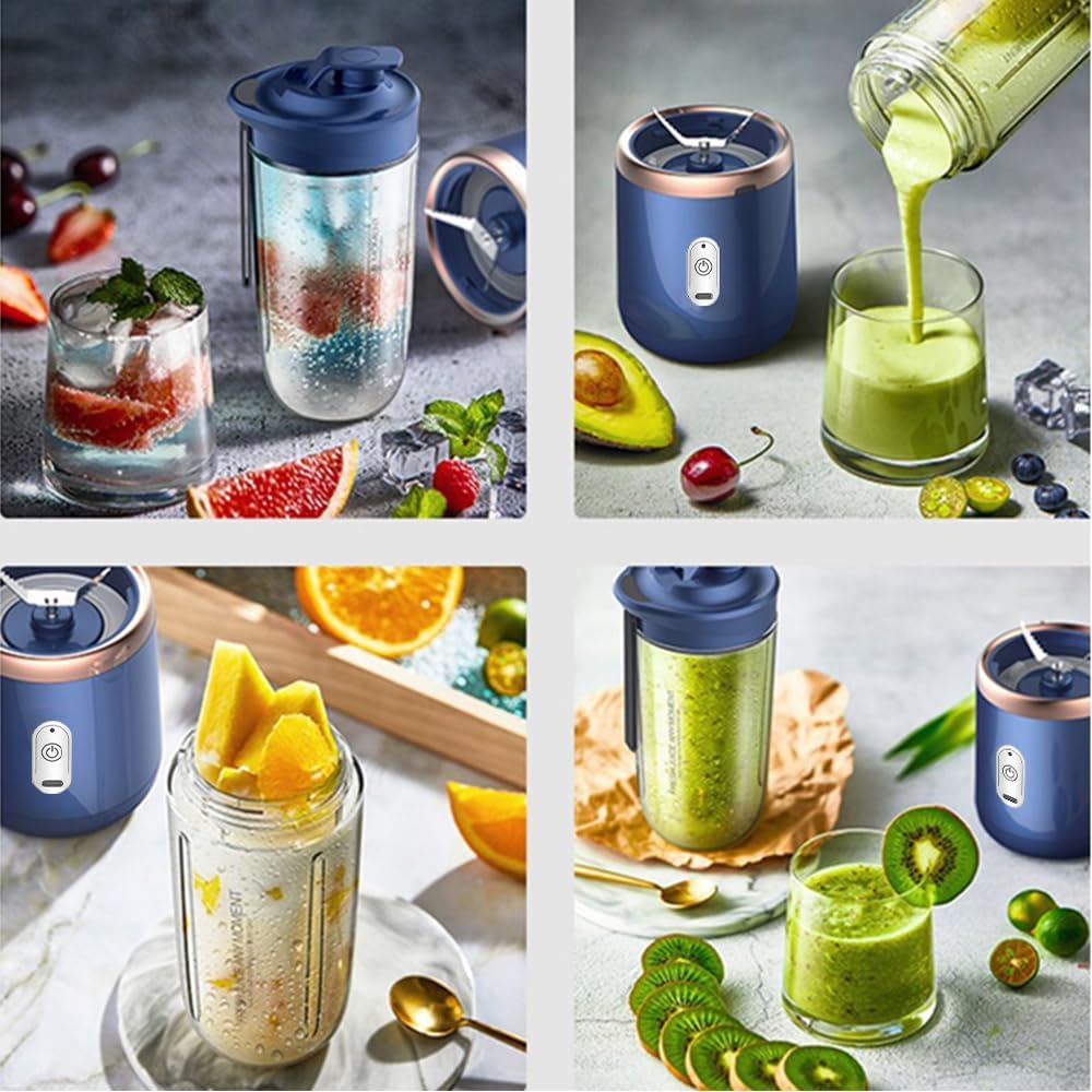 ⭐This portable juice cup adopts 40W high power motor, 21000 RPM super high speed and stainless steel blade, strong and fast fresh pressing, can make a nutritious juice drink in 9 seconds.Six leaf steel knife, you can even break ice and fruit.