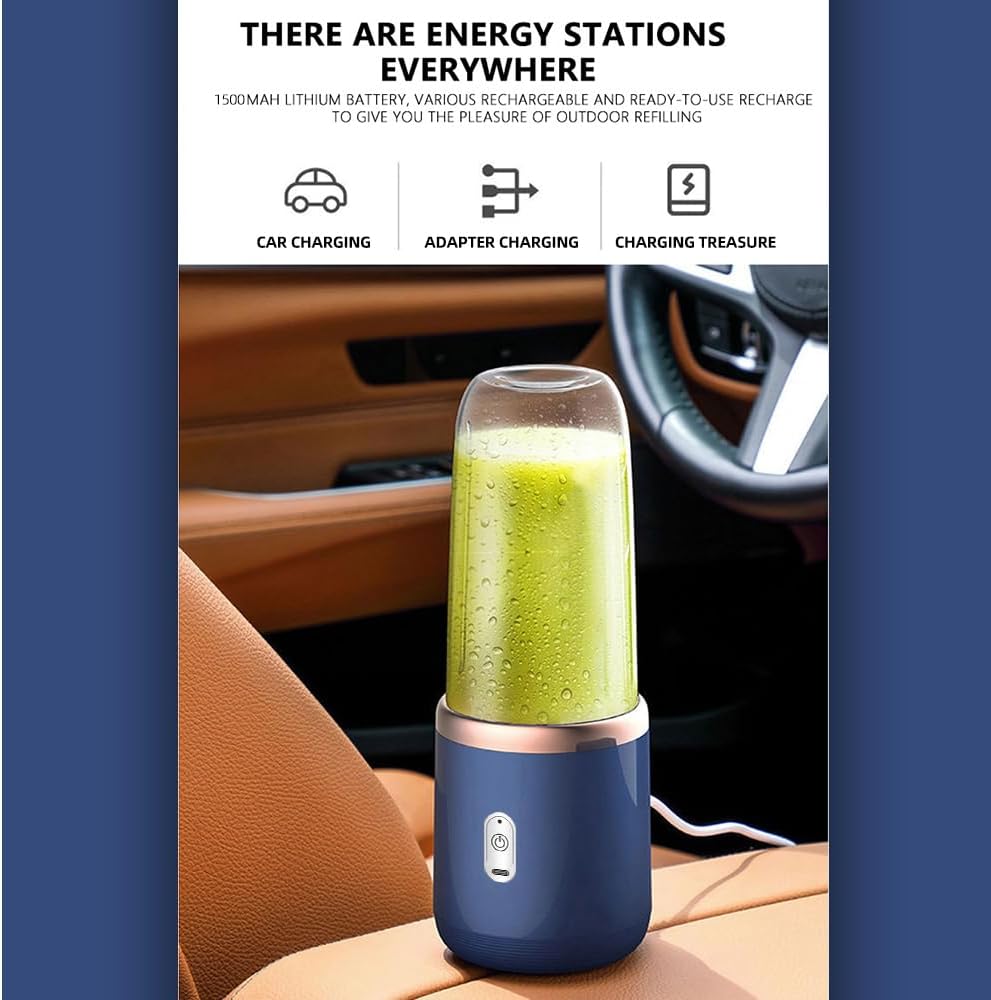 ⭐This juice cup is portable USB charging, with built-in 1500mAH high-quality rechargeable battery, which can be easily charged from mobile power supply, laptop, on-board USB port, mobile phone or other USB ports, and is durable.Squeeze about 10 times with full power.