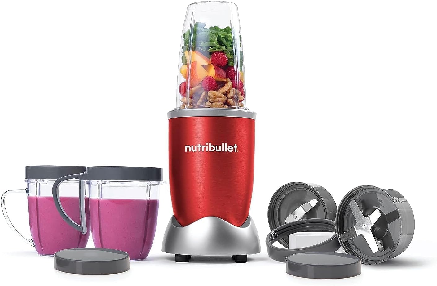 NutriBullet 600 Watts, 9pc Accessories,, Multi-Function High Speed Blender, Mixer System With Nutrient Extractor, Smoothie Maker, Grey, NBR-1212M, 1-year limited warranty