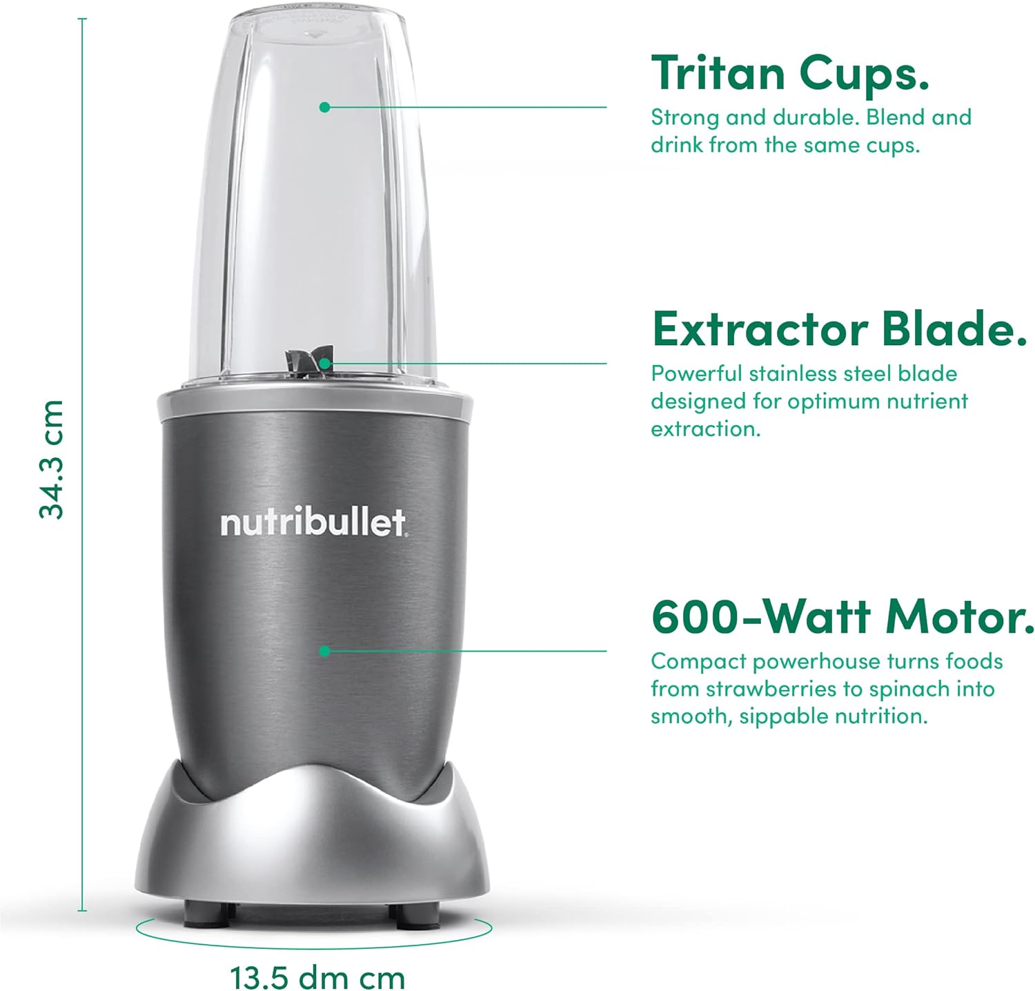 Powerful 600-watt motor and refined nutrient-extraction blades blend whole foods into liquid fuel for your body - in seconds