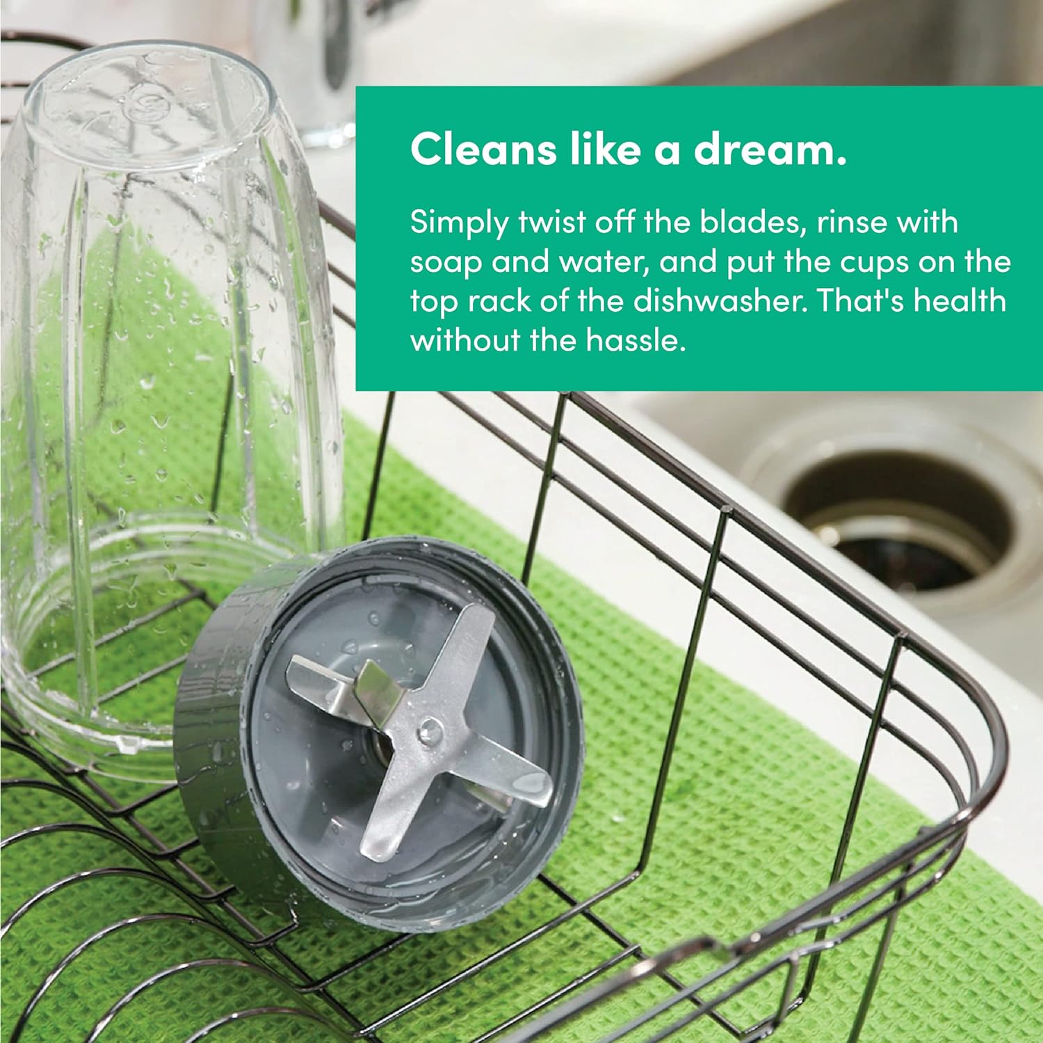 Hassle-free cleaning - simply twist off the blade, rinse with soap and water, and put the cups in the top rack of the dishwasher