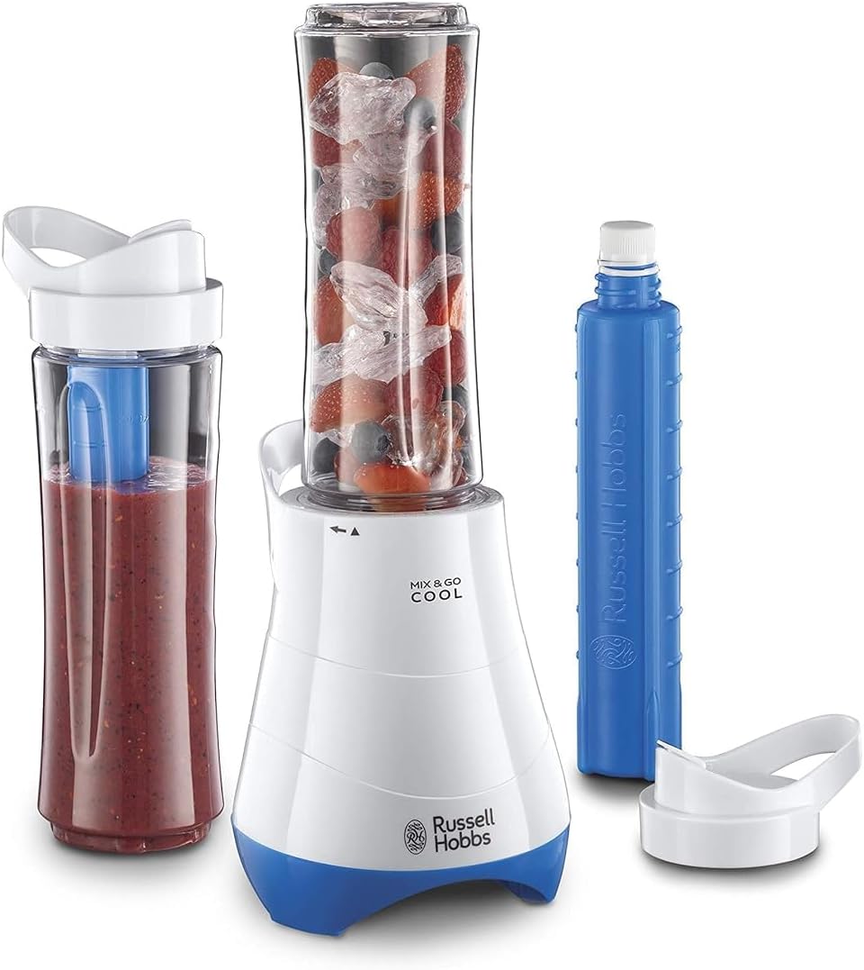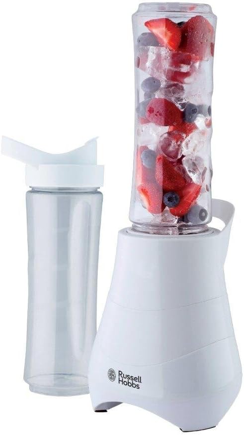 Russell Hobbs (21350) Mix and Go Personal Blender - 300W, Ice Crushing, 2x 600ml BPA-Free Bottles, Auto Start, Non-Slip, Dishwasher Safe, White - 1-Year Warranty