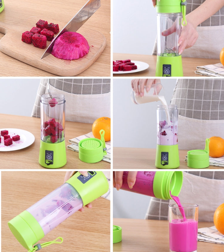 USB Rechargeable Electric Automatic Vegetable Fruit Citrus Orange Juice Maker Cup Mixer Bottle (380ML 2 Blender)(2 Blades Blue)