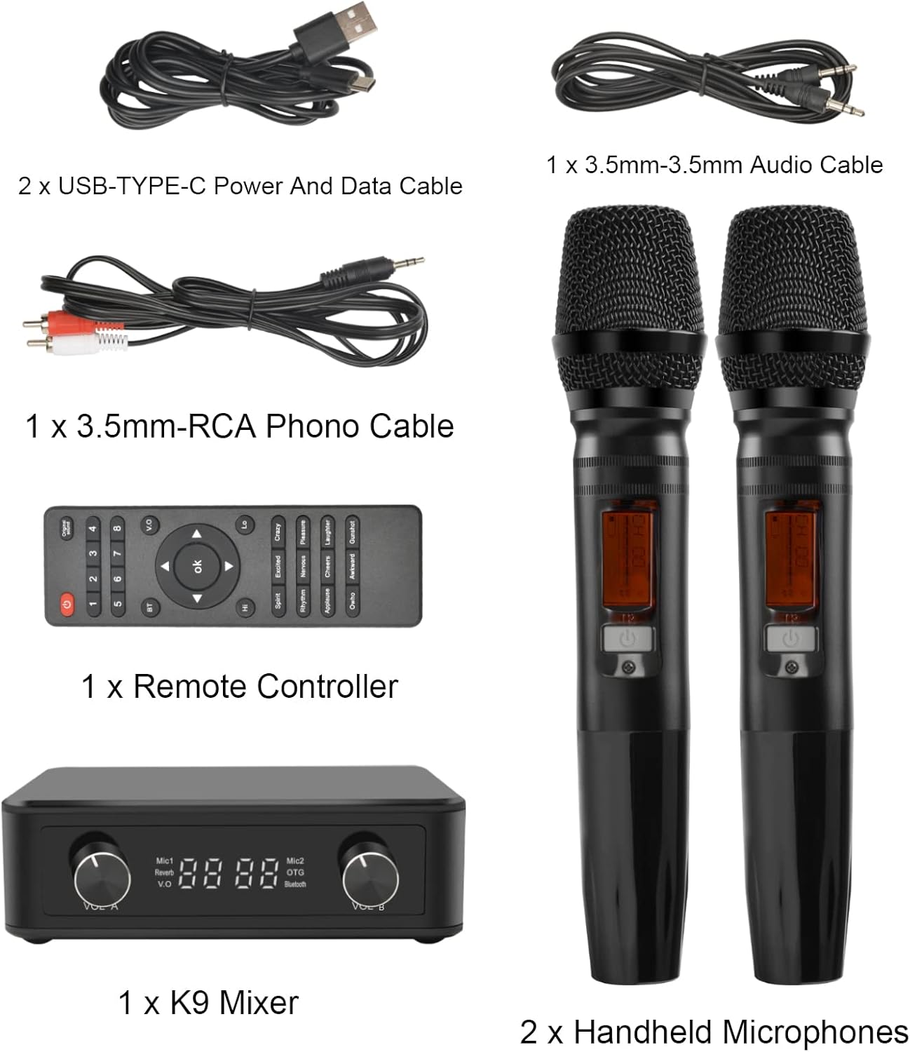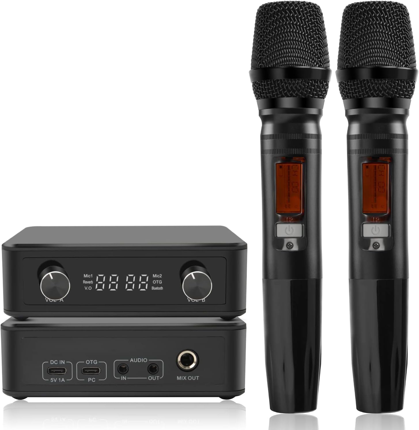 OMIRA Wireless Microphone System, Bluetooth Wireless Karaoke Microphones System, Dual Handheld Cordless Microphones OTG & Audio & Mix in/Out for Karaoke, Smart TV, Home Theater, PC