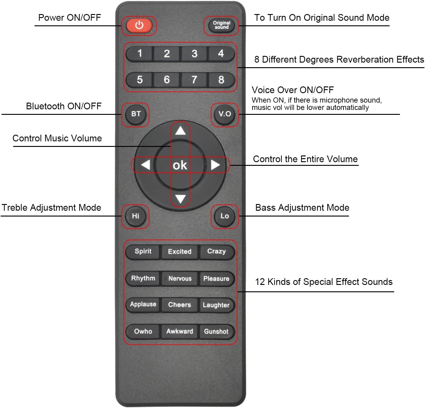 đ€8 Switchable Reverb Effects & 12 Special Effect Sounds - Our Karaoke machine has 8 kinds of reverb effects and 12 Special Effect Sounds, for karaoke, party, school, and church. Compact metal receiver with adjustable echo effect allows to mix the mic signal with music signal, Meets your all favorites.
