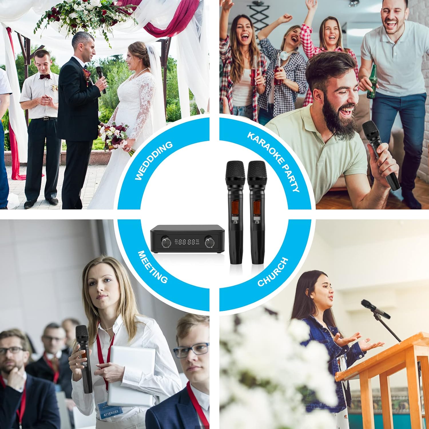đ€2 Dual Channel Wireless Handheld Microphone - Double-Channel wireless microphones system, each handheld microphone operates on a single separate channel. Individual volume controls enable precise volume balancing. well-designed for interference-free performance and hassle-free sound transmission.