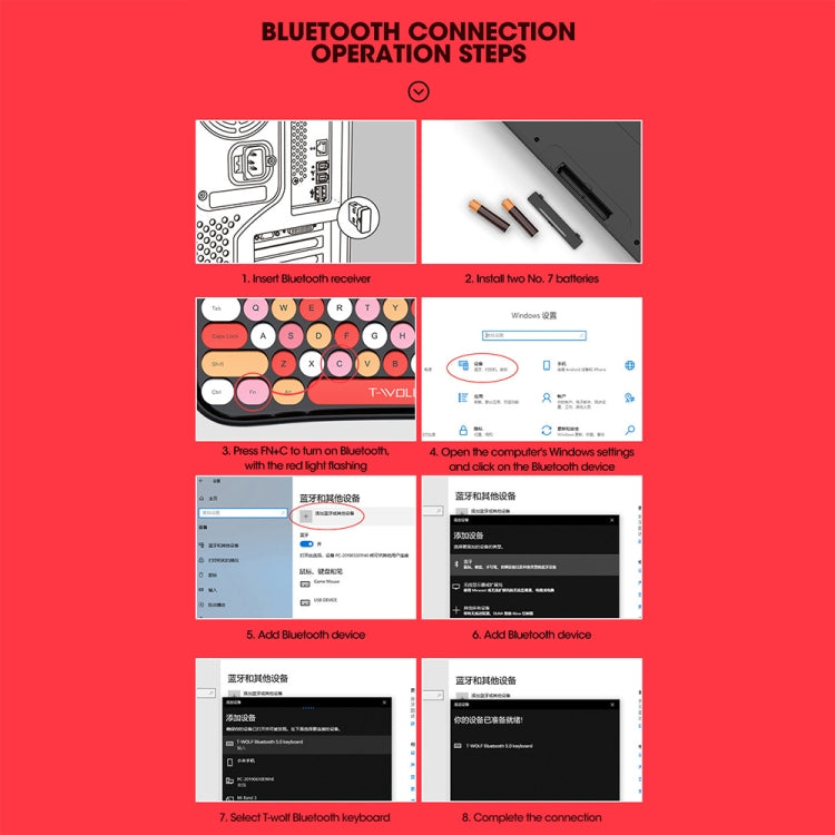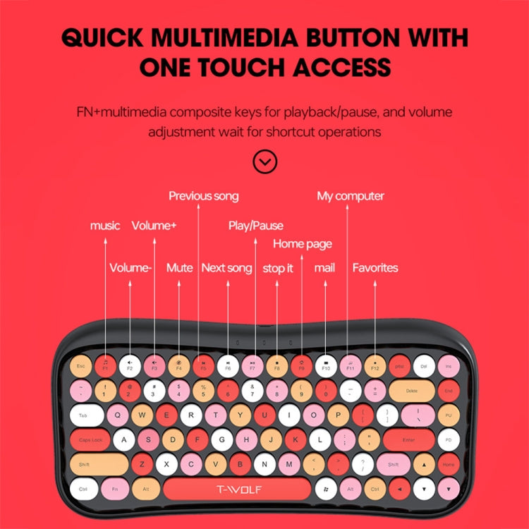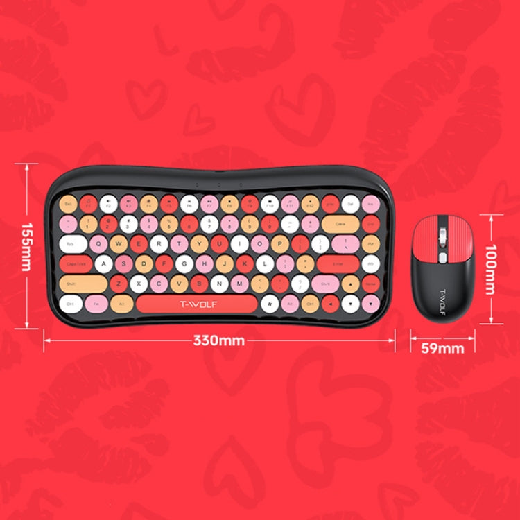 T-WOLF TF660 2.4G+5.0 Bluetooth Dual-Mode Retro Wireless Keyboard And Mouse Set(Black Red)