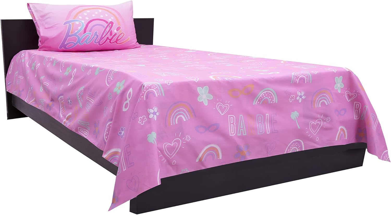 VIBRANT FADE-RESISTANT & ECO-FRIENDLY COLORS - Free from all harmful chemicals this bedding sheet is exceptionally color-fast and fade-resistant even after several washes. Suitable for all seasons and even for the most sensitive skin. Bold character imagery of barbie is featured of this bedsheet. When it's time to redecorate. The vivid colors and patterns are sure to keep your little one sleeping deep and dreaming happily! Match them up with nearly any bedspread theme to blend in seamlessly.