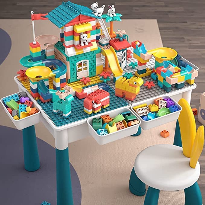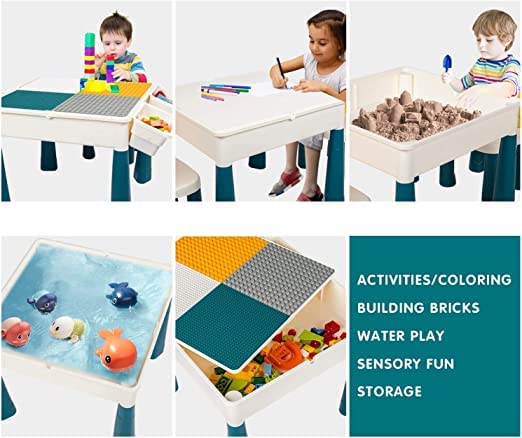 Dreamons link Kids Multi-Functional Educational Block Table and 1 Chair Set – Kids Multi Activity Building Block Table with Storage; kids study table and chair