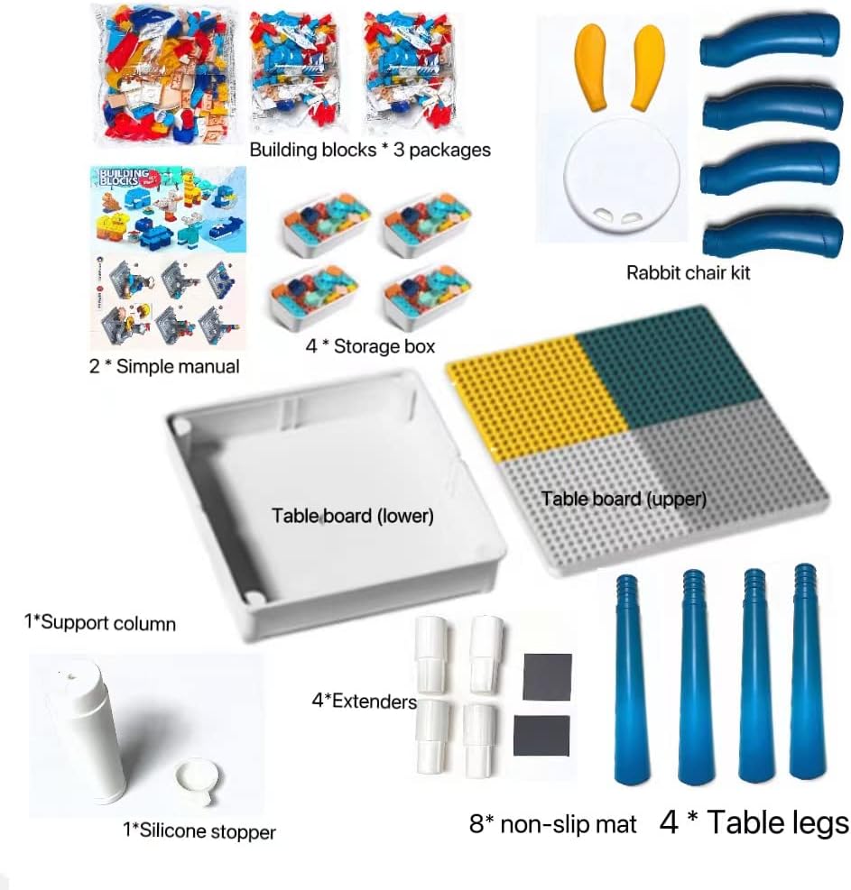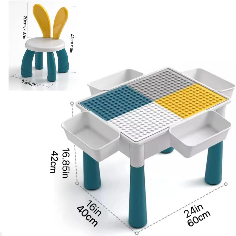 Kids Multi-Functional Educational Block Table and 1 Chair Set (Include 403pcs building blocks)– Kids Multi Activity Building Block Table Toy with Storage; kids study table and chair