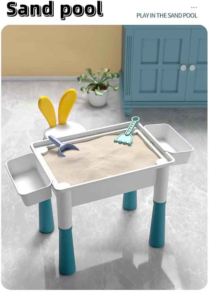 【All-in-One Kids Activity Table】Kids table and chair set comes with 1 chairs and a reversible top for building blocks or learning, even eating meals. With leak-proof design, also used as water table or sand table. Deep table body & 4 bins, brings super capacity for storage table without mess. What a versatile table for kids multiple activities!