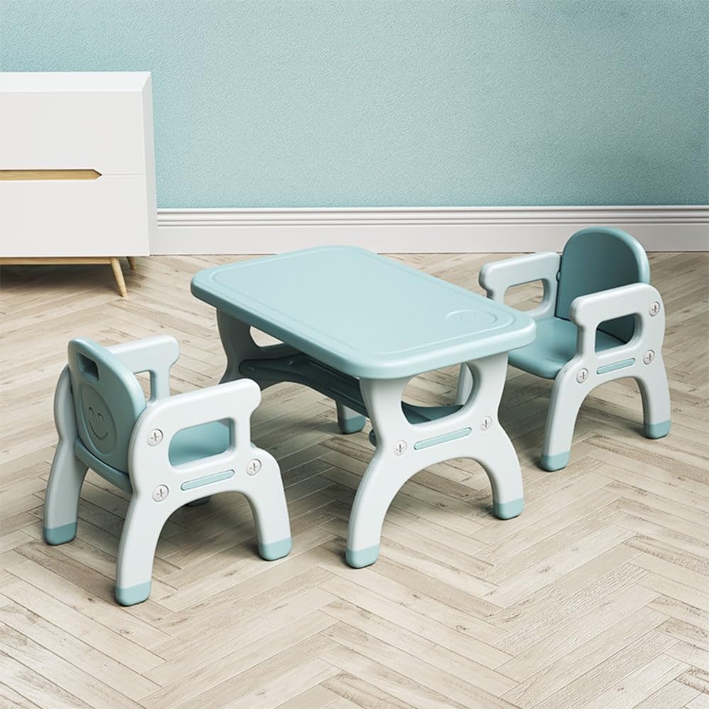Kids Table and Chair Set, 3 Piece Activity Table and 2 Chair Set, Suitable for Boys Girls Learning Drawing Reading Playing, Ideal for Preschoolers, Home Use, and Kindergarten (Blue)