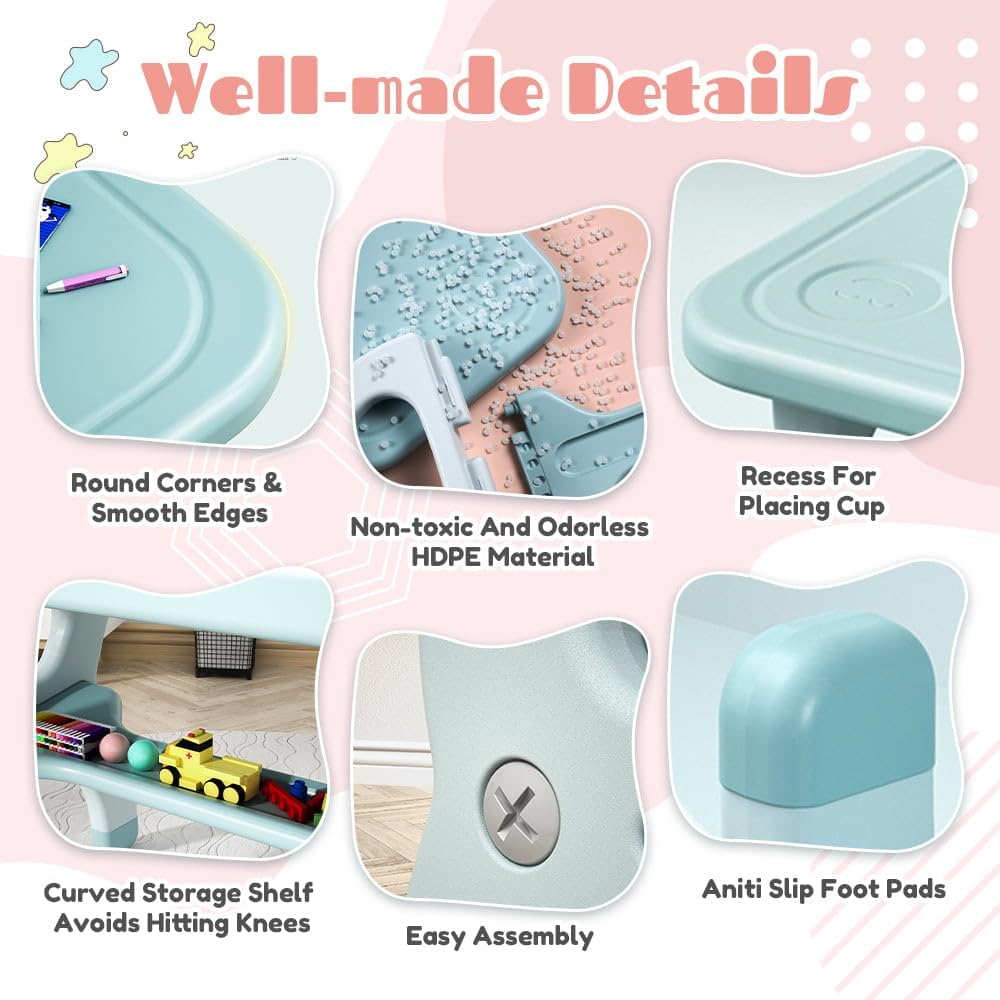 Safe and Durable Construction: The table and chairs are made from high-quality, non-toxic Polyethylene (PE) material, ensuring a safe environment for your children.