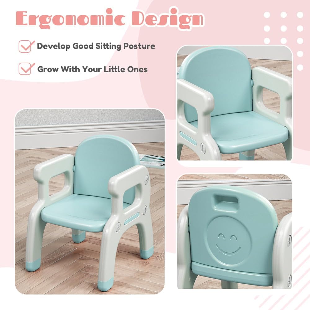 Ergonomic Design and Versatile Use: The chairs have a comfortable and ergonomic design, supporting proper posture during mealtime and play sessions. Ideal for mealtimes, study sessions, arts and crafts, and gaming activities, providing a multi-functional space for your child.