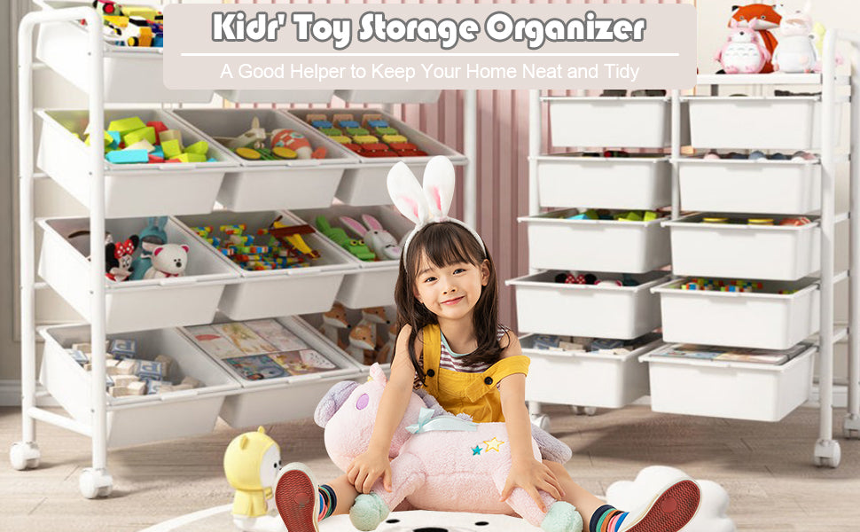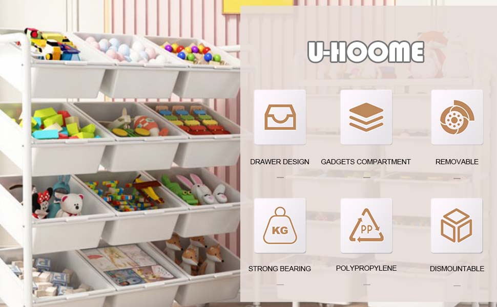 U-HOOME Toy Organizer with 10 Removable Storage Bins,Kid's Large Toy Storage Unit for Playroom,Children’s Room,Bathroom Office Kitchen Pantry Garage Organizer, Kids Furniture Set Storage