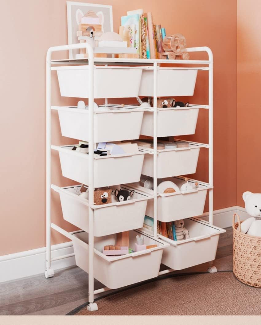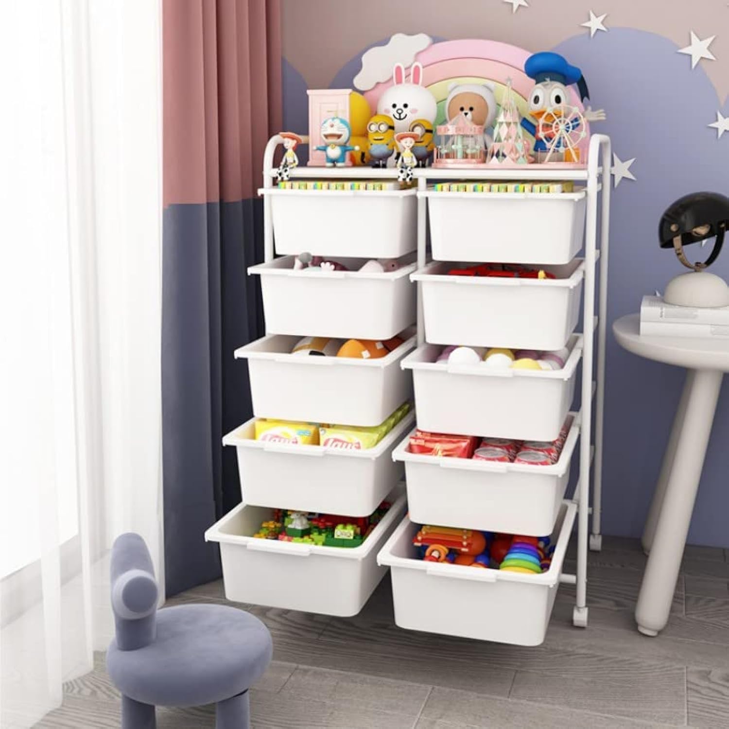 ✿Toy Storage Organizer with 10 Bins: 10toy bins are all interchangeable, including 10 standard bins. With these 10 storage bins, the toy storage organizer provides a sufficient space to organize blocks, crayons, toy trucks, dolls and other items, especially designed for boys and girls aged 3-8 years old.