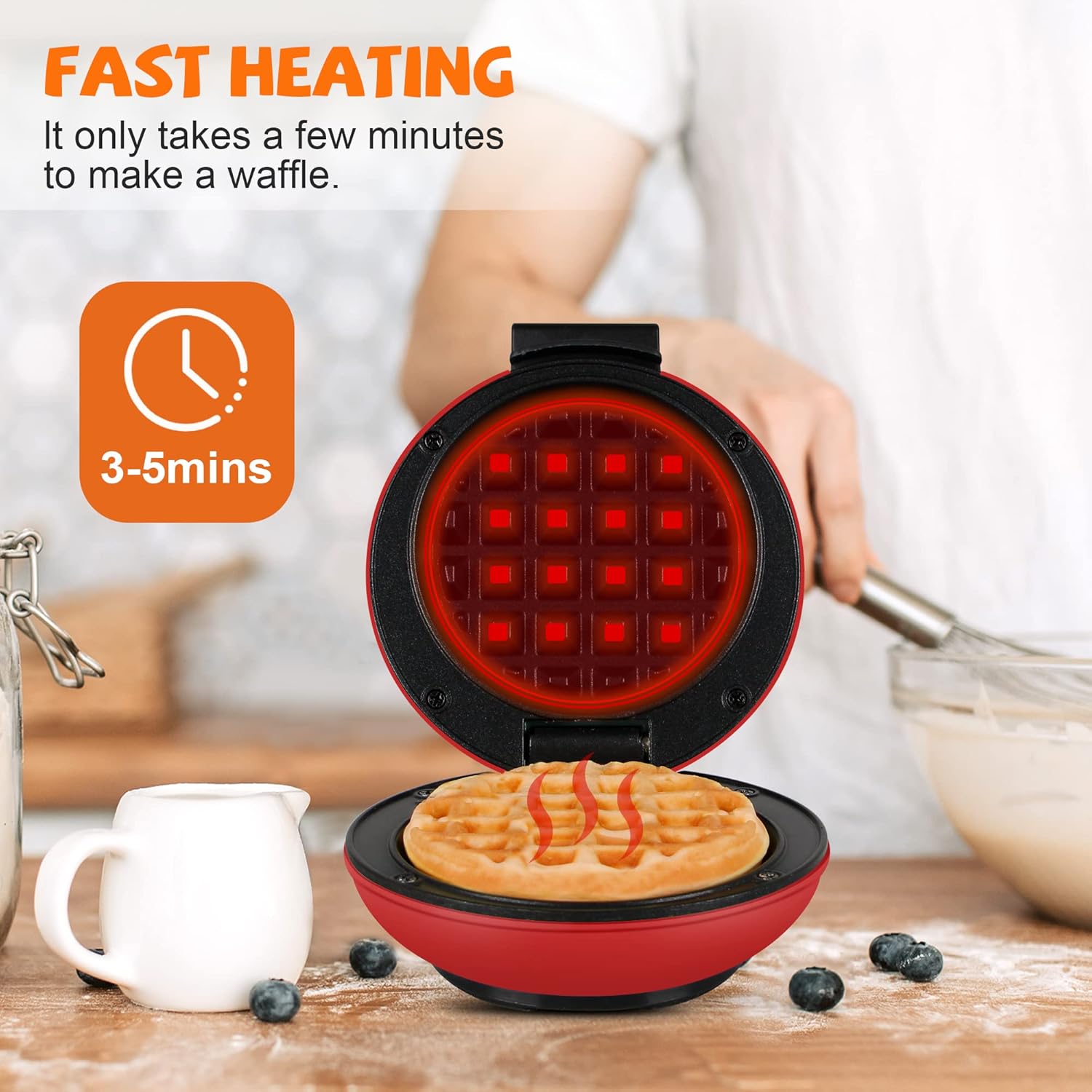 🧇【Simple and Fast Heating】CROWNFUL mini waffle maker is designed in Italy. You can enjoy making classic waffles and a variety of delicious breakfast in a few minutes. Mix it with your favorite egg, grilled cheese, hash browns, biscuit pizzas, paninis, cookies and etc. This is great for families and busy people.