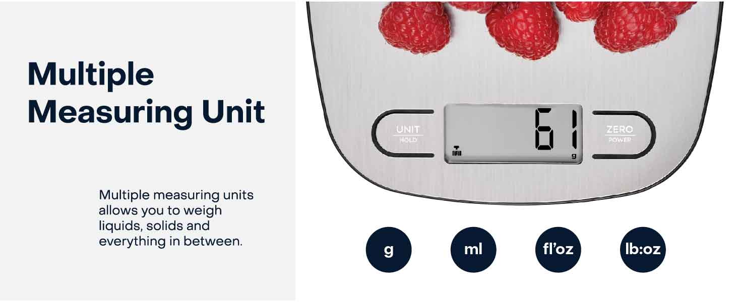 • From The Kitchen To Everyday Life: Switch Between Grams, Pounds & Ounces, Fluid Ounces, And Milliliters.