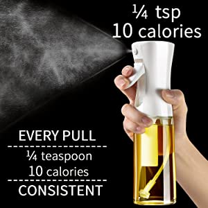 Effective Control of Oil Flow -:Each time you pull the trigger, the exact amount of oil delivered is calculated, and you'll get ¼ teaspoon (1.5g) of oil for total control of calorie counting in your kitchen, no matter which oil you choose.