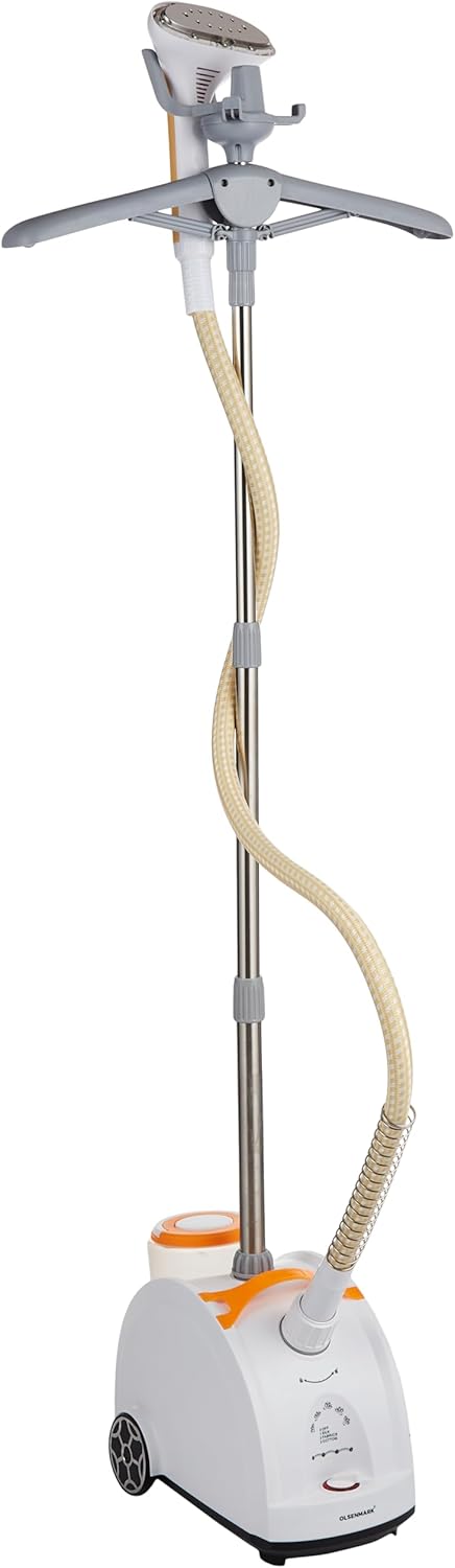 Olsenmark Garment Steamer, 1.1L - 360 Degree Rotating Stand & Foldable Hanger - PP & ABS Material - Overheat & Over Current Protection - Timer Function