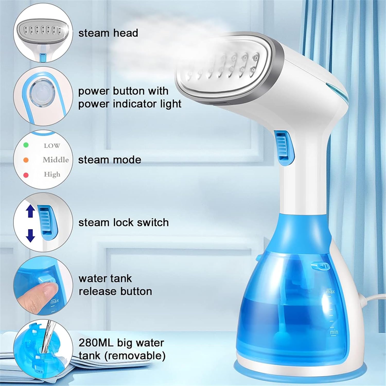 Portable Handheld Clothes Steamer, 15s Fast Heat up, 9.4 Oz Capacity, Includes Ironing Brush, Wrinkle Remover for Home Use