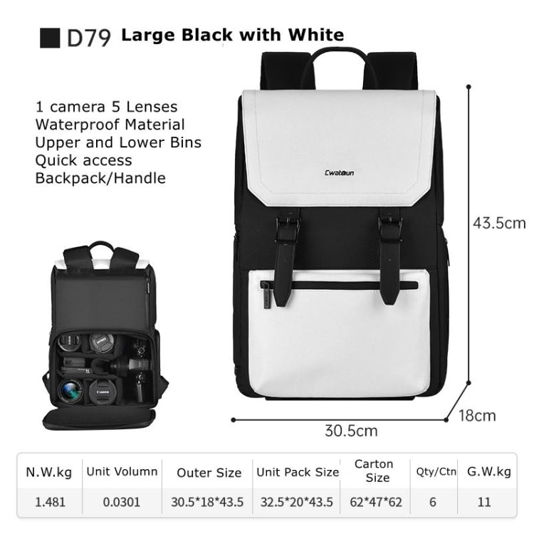 Cwatcun D79 Camera Backpack Multi-Functional Camera Dual Shoulders Bag, Size:43.5 x 30.5 x 18cm Large(Black White)
