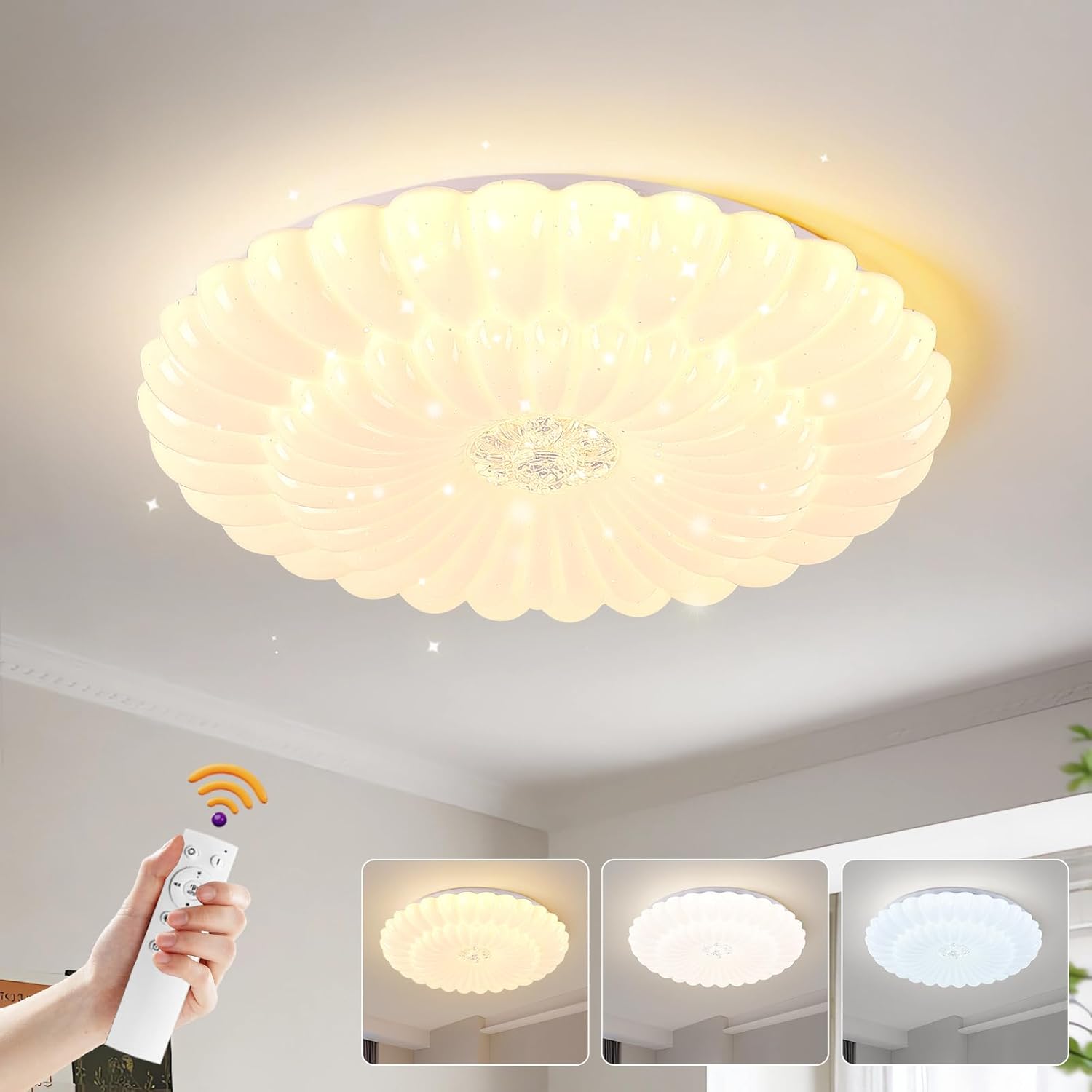 Energy-Efficient Brilliance: Experience the brilliance of built-in, highly efficient LED light arrays that balance low power consumption with high brightness. The evenly distributed light is both bright and soft, ensuring a comfortable ambiance without any glare, even when directly looking at the ceiling lamp.