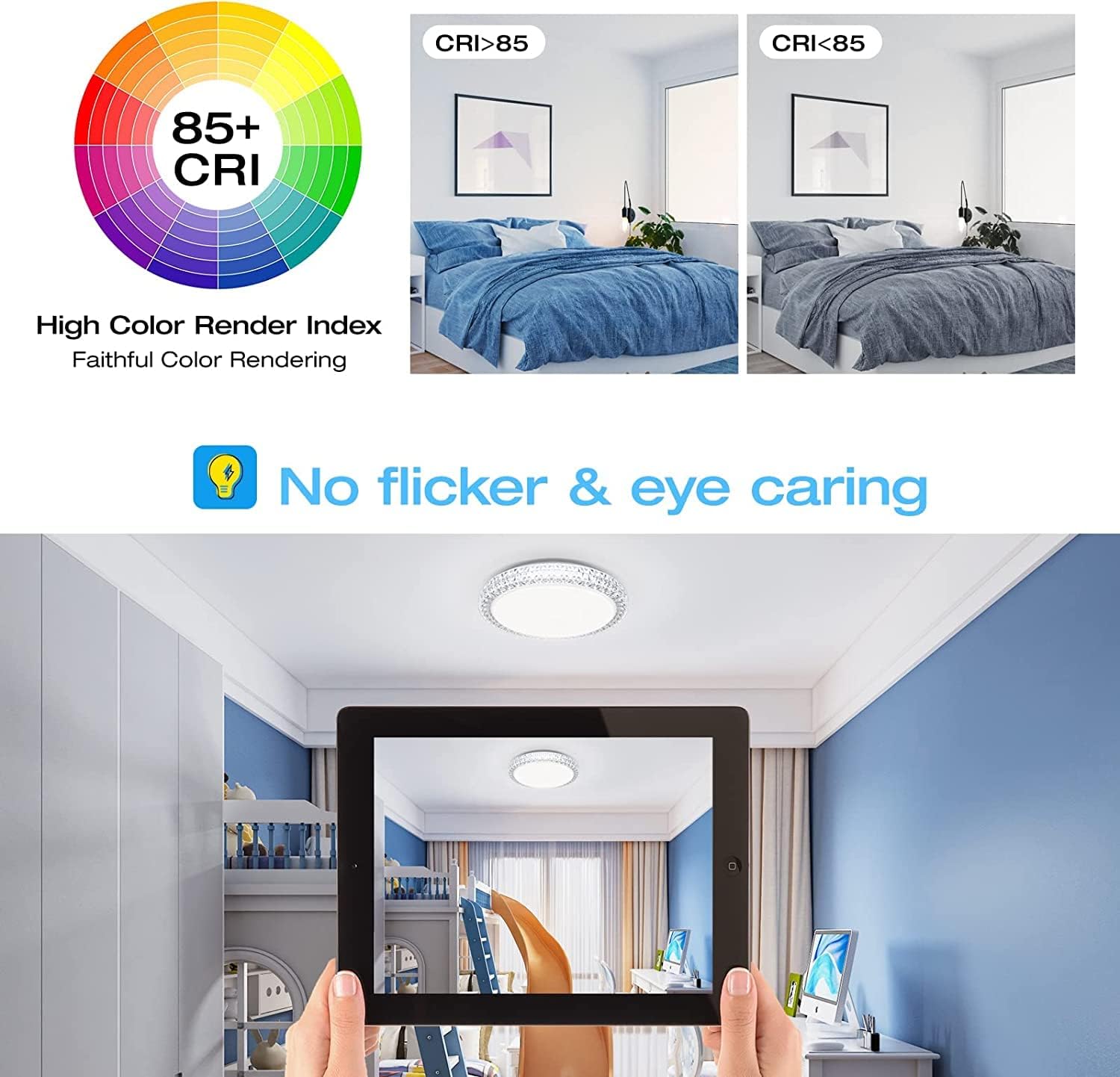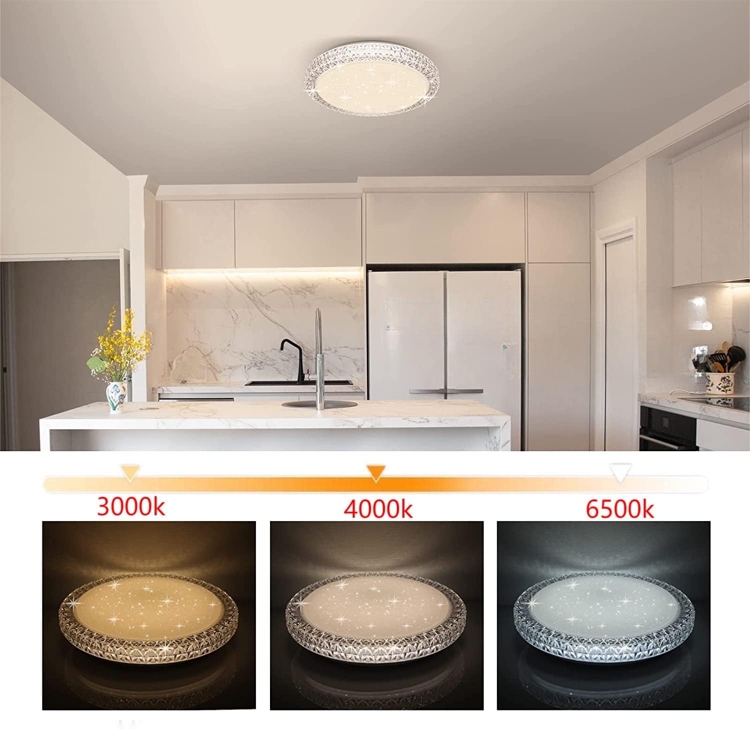 【☄ 3-COLOR AVALIABLE】This flush mount ceiling light features a selectable color temperature which allows you to choose your preferred light color: warm white(3000k), netural white(4000k) and cool white (6500K) ,controlled by switch only.