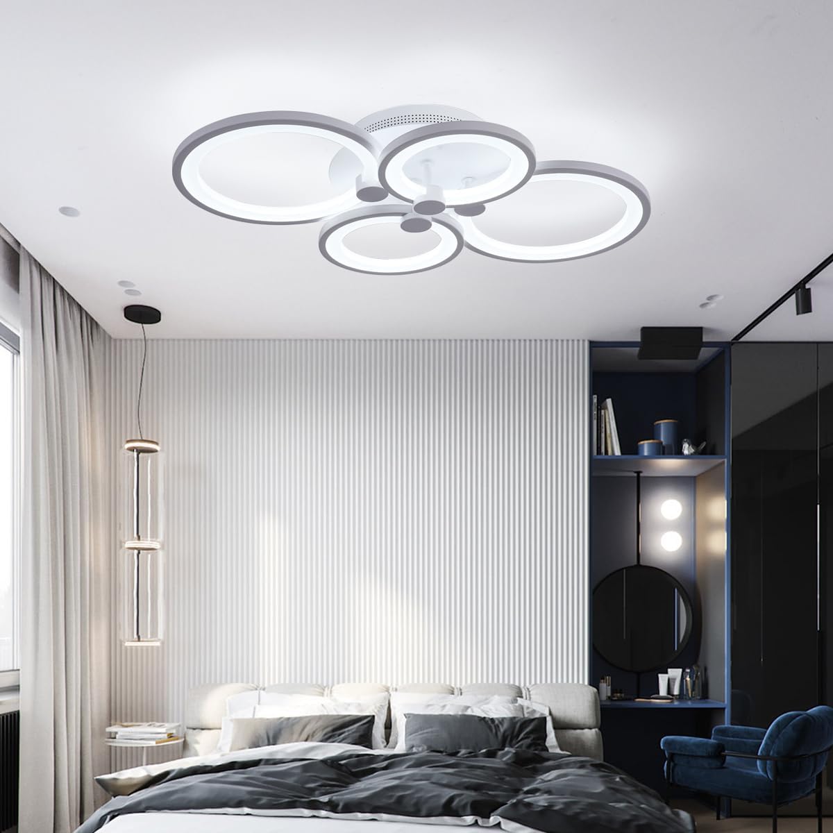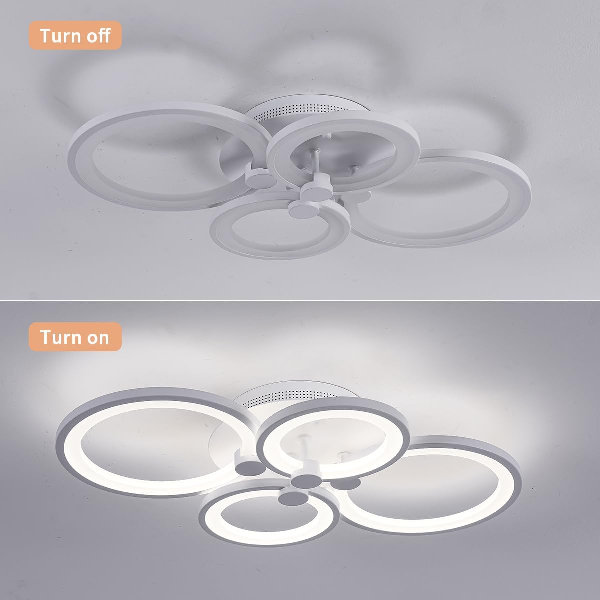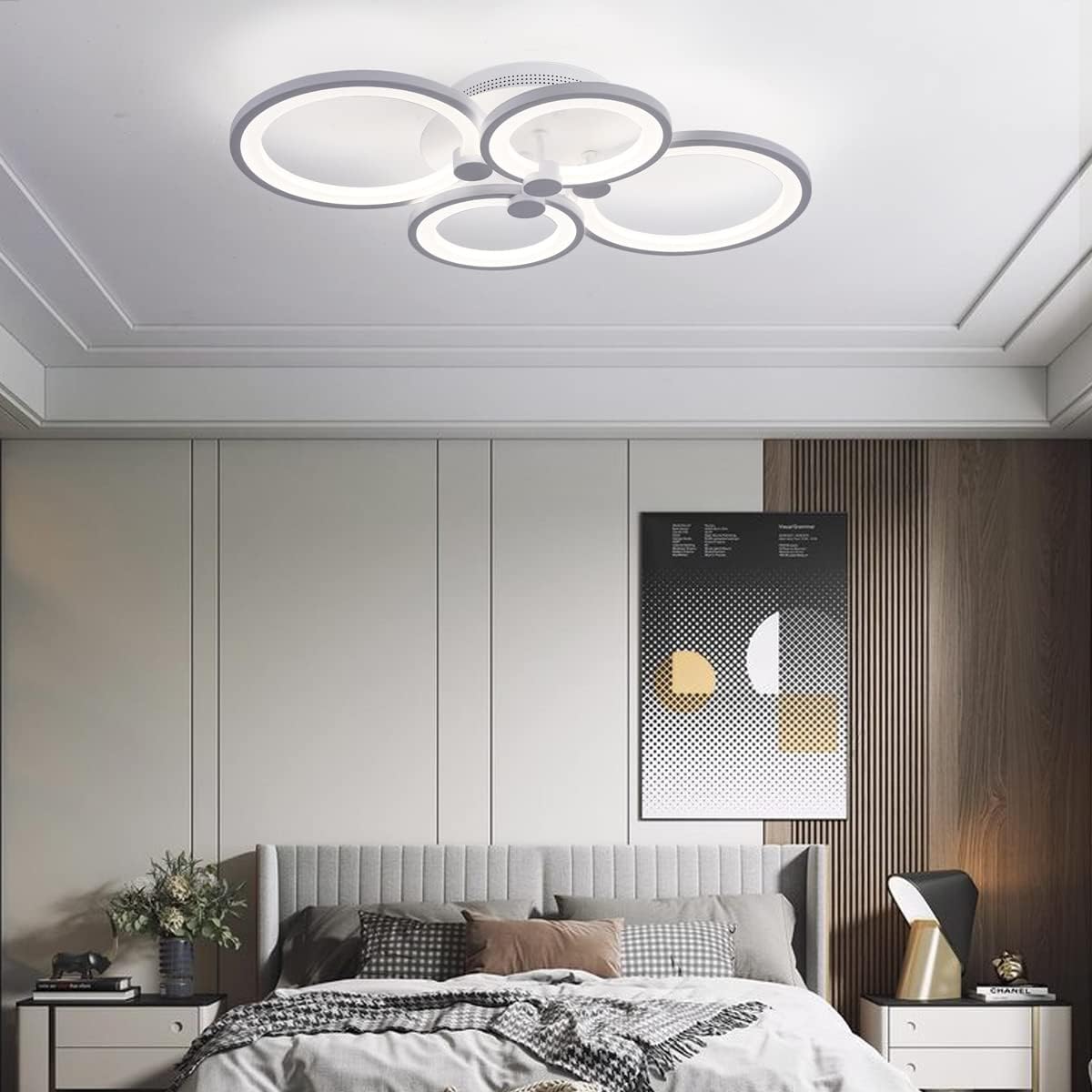 【Post-Modern Design】More stereoscopic than other flat ceiling lights; a modern shape with 4 rings, just like a flower placing on your ceiling; Ideal for indoor use, such as bedroom, hall, living room, dining room, kitchen, decorative lighting, basement, cafe bar, restaurants, corridor, reading room, children's room, shop, hotels, or Decor at home.