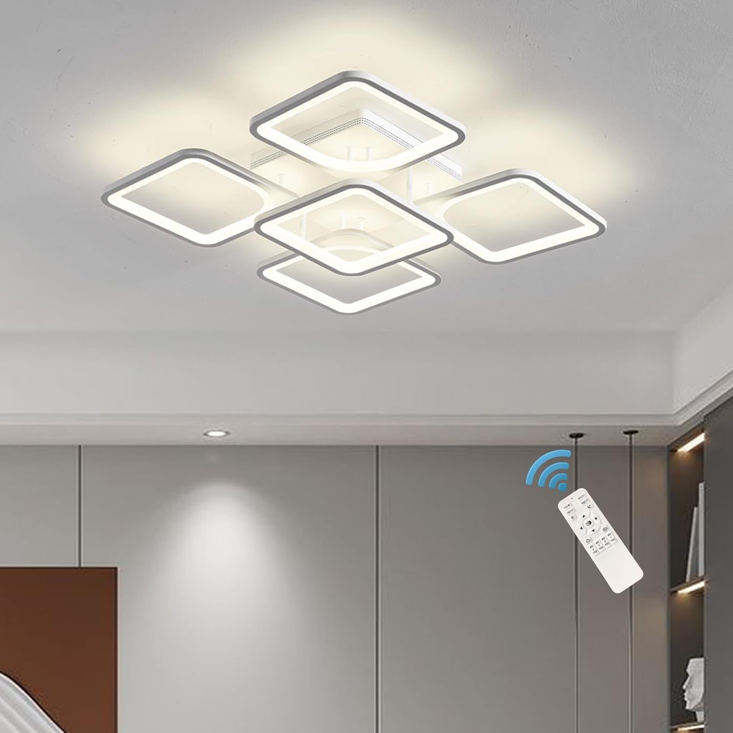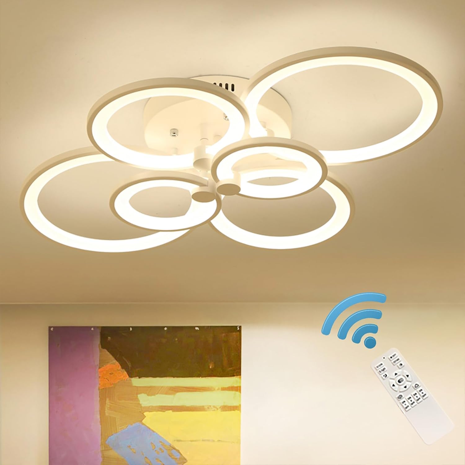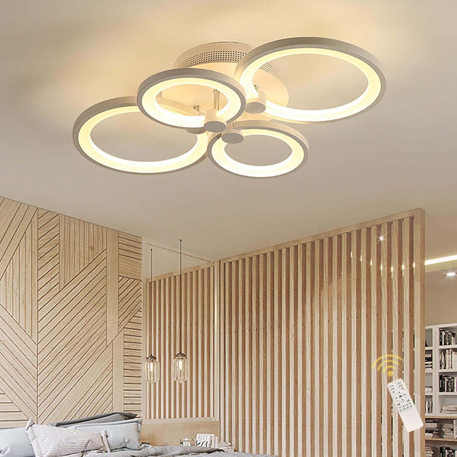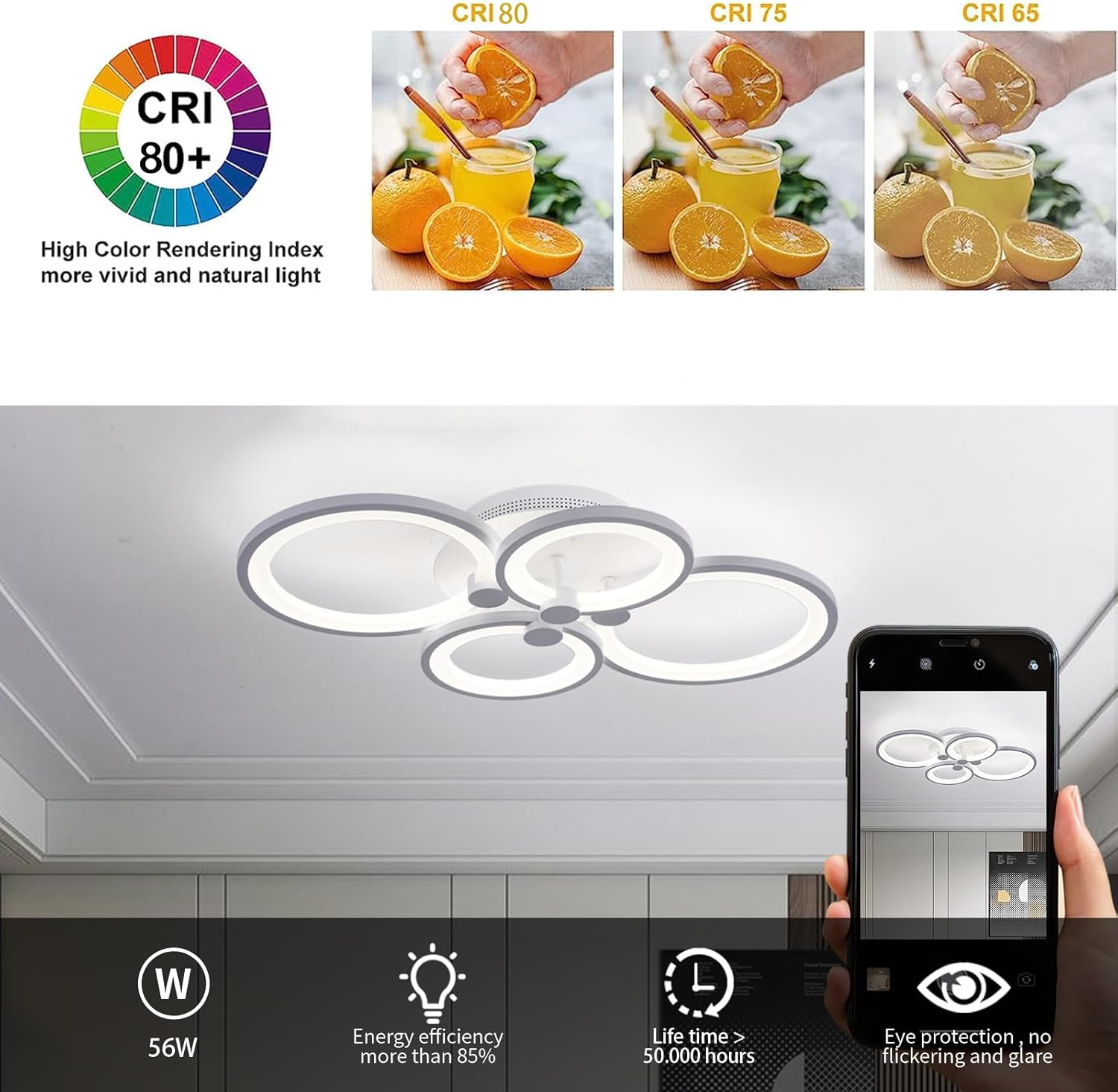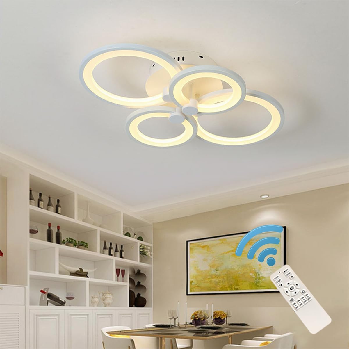 Qcyuui Dimmable Modern Ceiling Light, Acrylic LED Round Flush Mount Lighting Fixtures, 56W 4-Lights 56cm Indoor White Ceiling Lamp with Remote for Living Room Kitchen Bedroom Dining Room Office