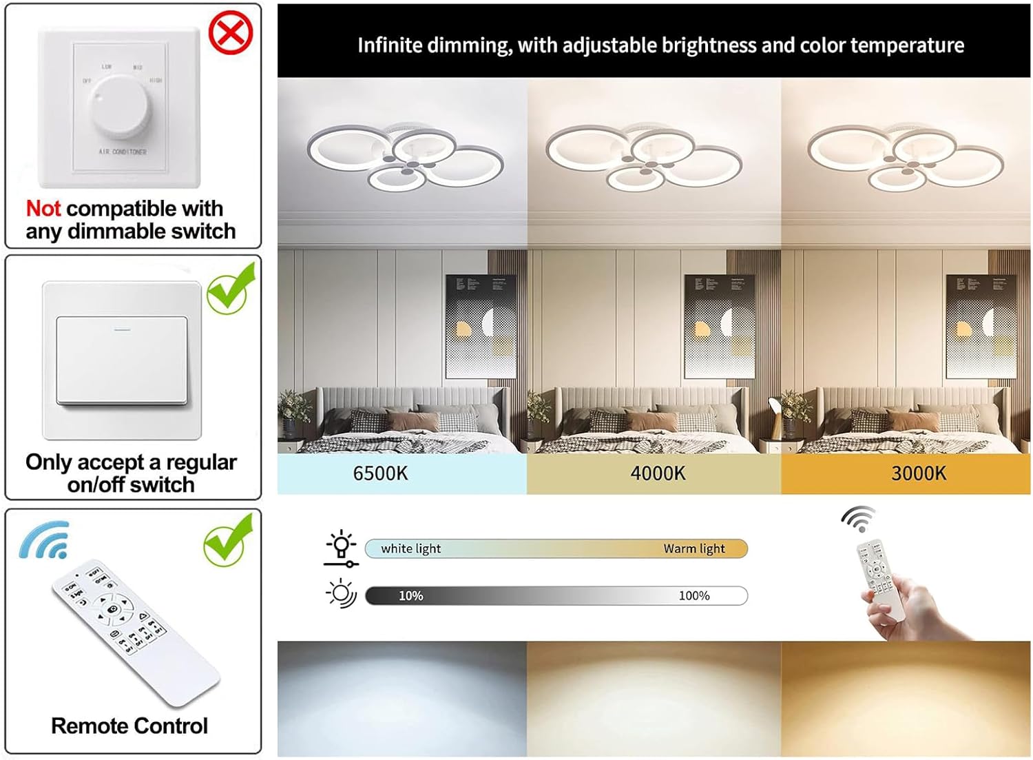 【Two Time Finish & Dimmable】High-quality aluminum and acrylic finished by two times powder coating and polishing applied, resulting in high-temperature resistance, anti-corrosion, anti-fade, anti-scratch, assuring long lifespan. Light brightness and colour regulates: cool light - natural light - warm light, 3000K - 6500K. If you want a comfortable atmosphere, you can change the ceiling lights with a wall switch or remote control.