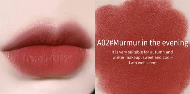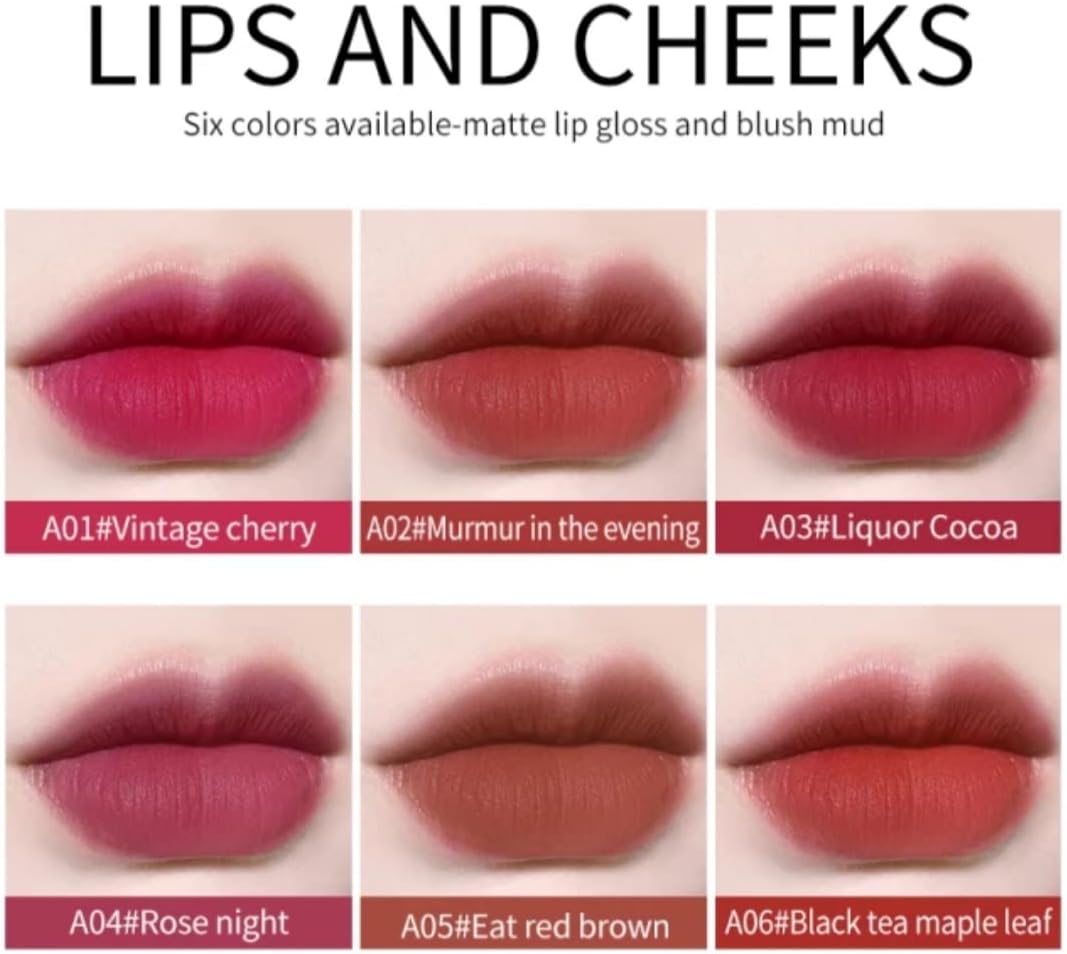 Lipstick Mousse Velvet LIPSTICK Mud Waterproof Matte Lip Gloss Vegan Cosmetic Blush Lip Cheek Tint Mud (A02# MURMUR IN THE EVENING)