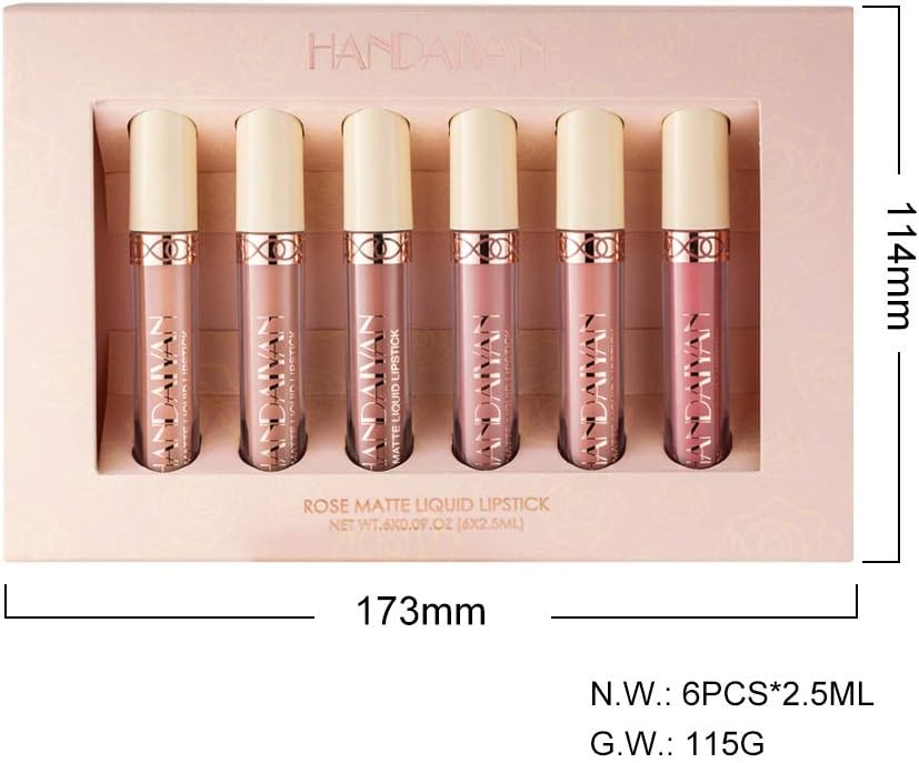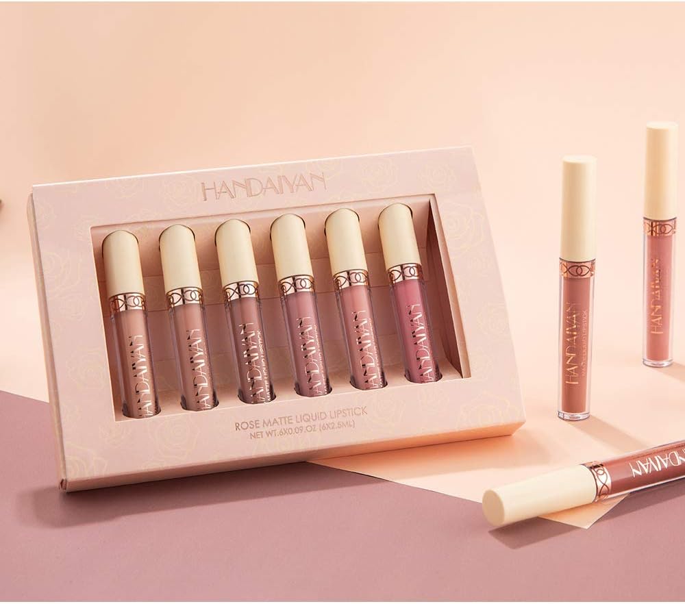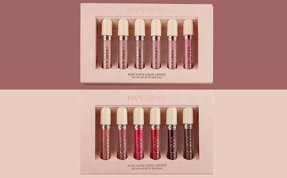💋Value set: a box of 6 colors, 6 matte lipsticks of different colors, giving you a different beauty every day for a week