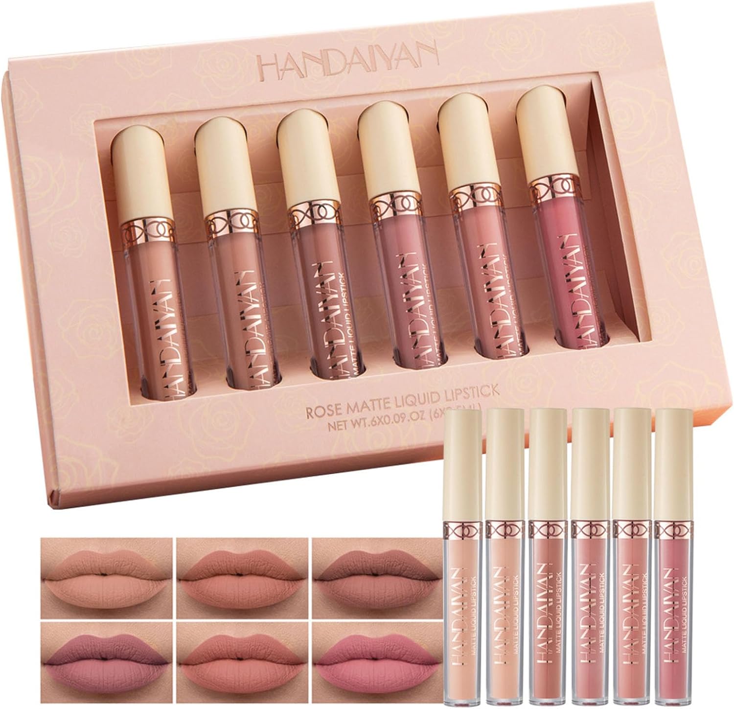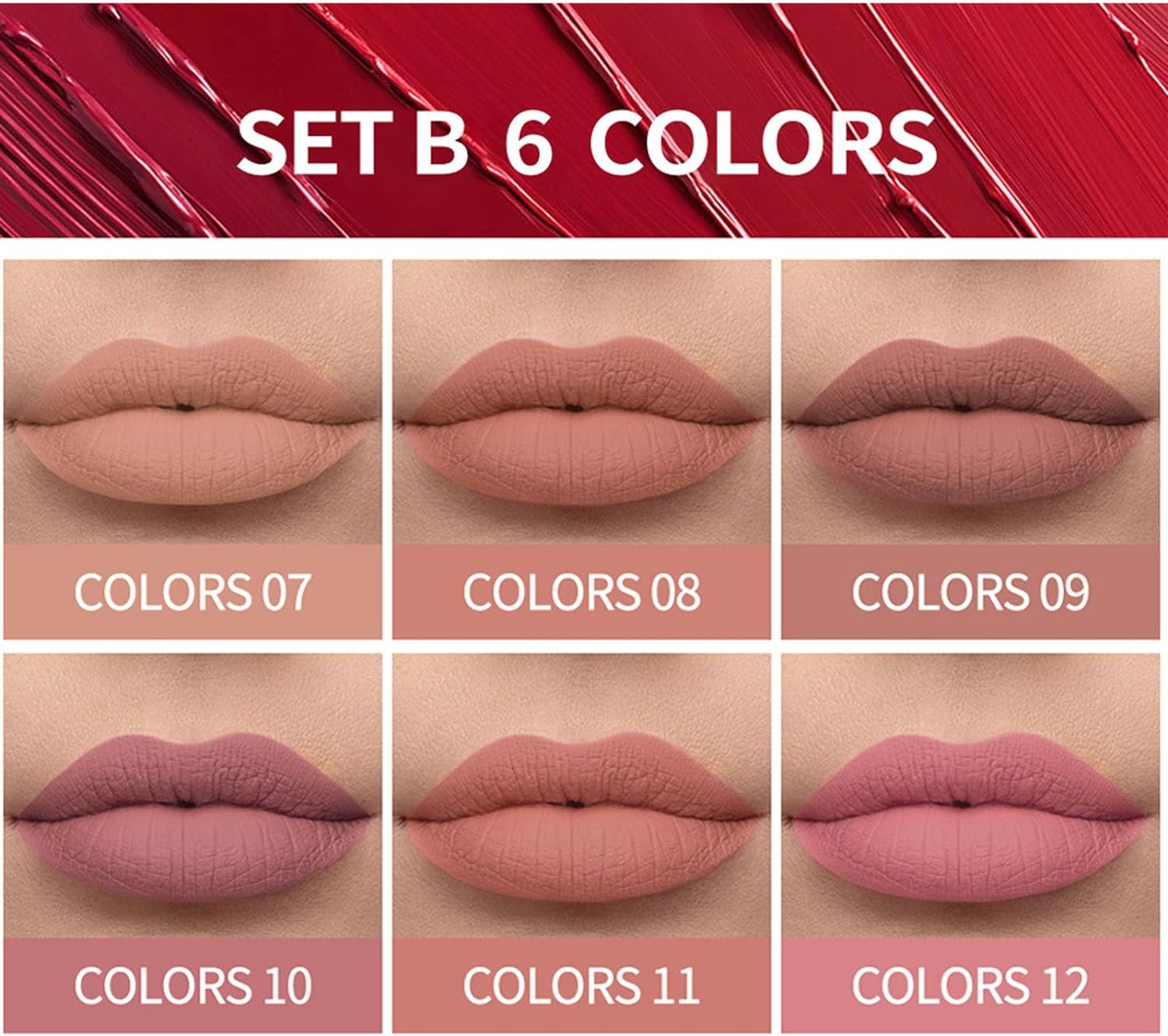 Lipstick Set Matte Liquid 6 Colors Long Lasting Waterproof for Women Highly Pigment Velvety Nude Super Stay Soft Hydrating & Lightweight Professional Moisturizing Makeup Lips Gift (B)