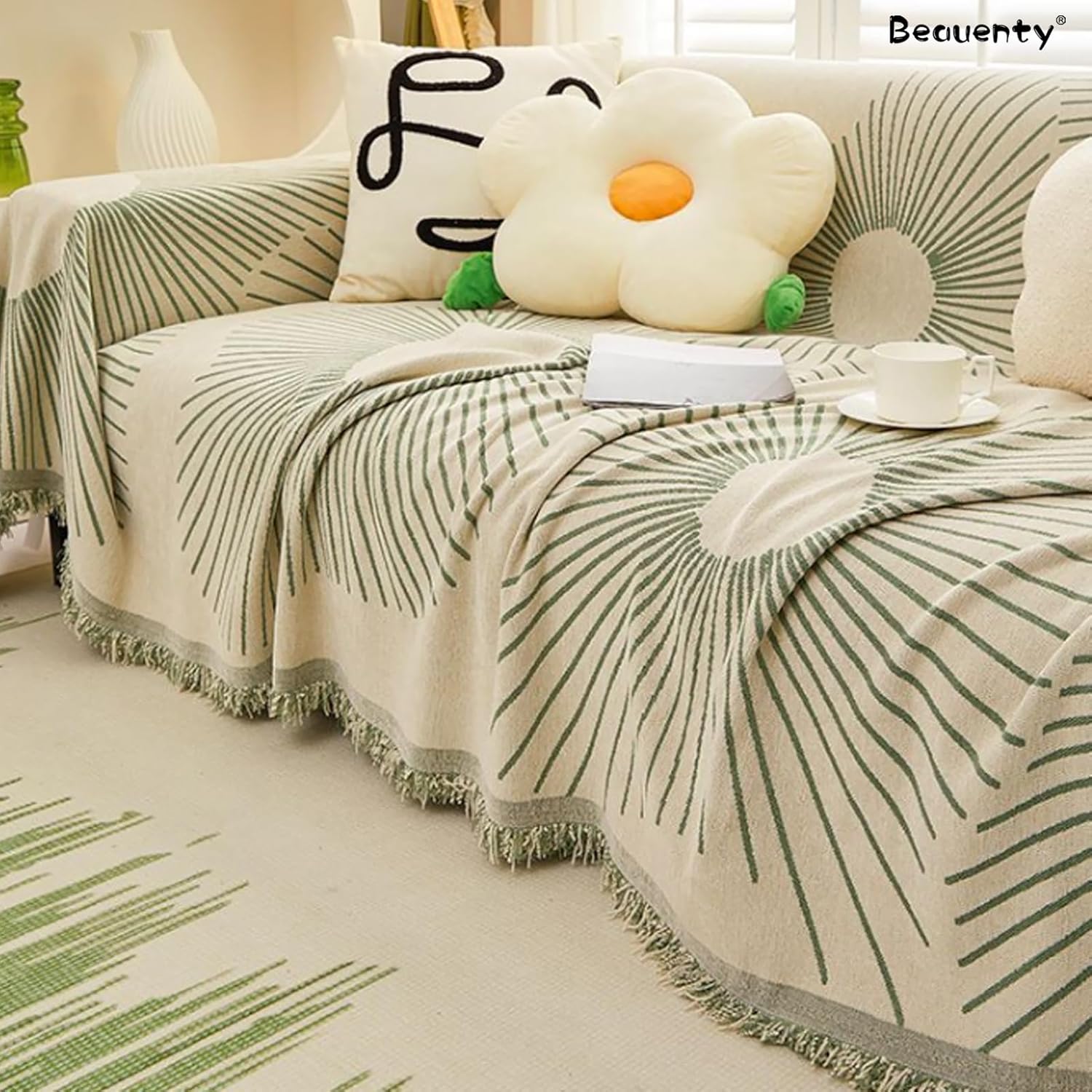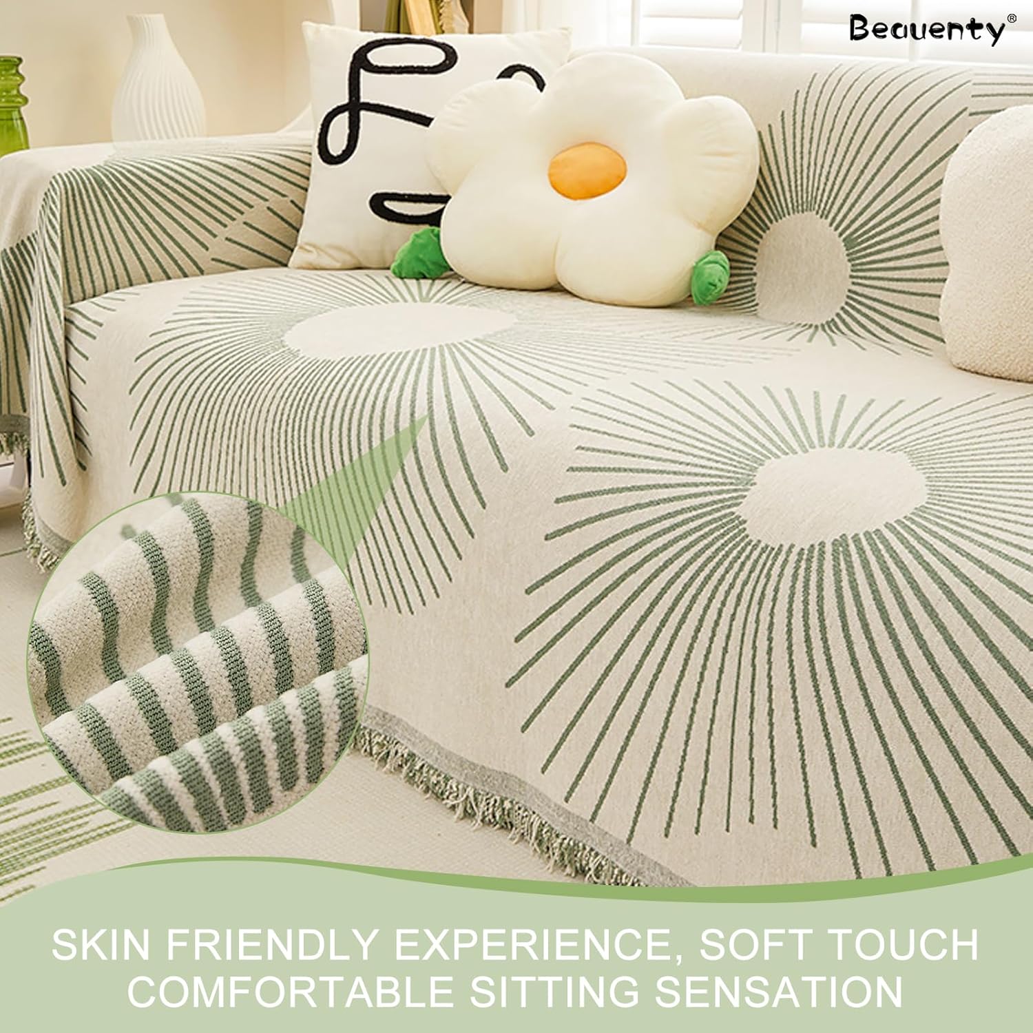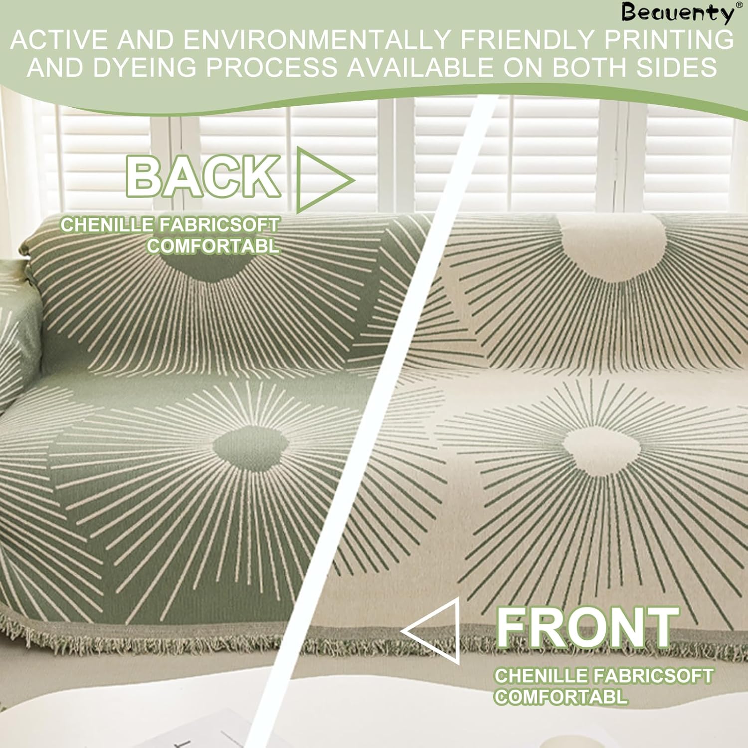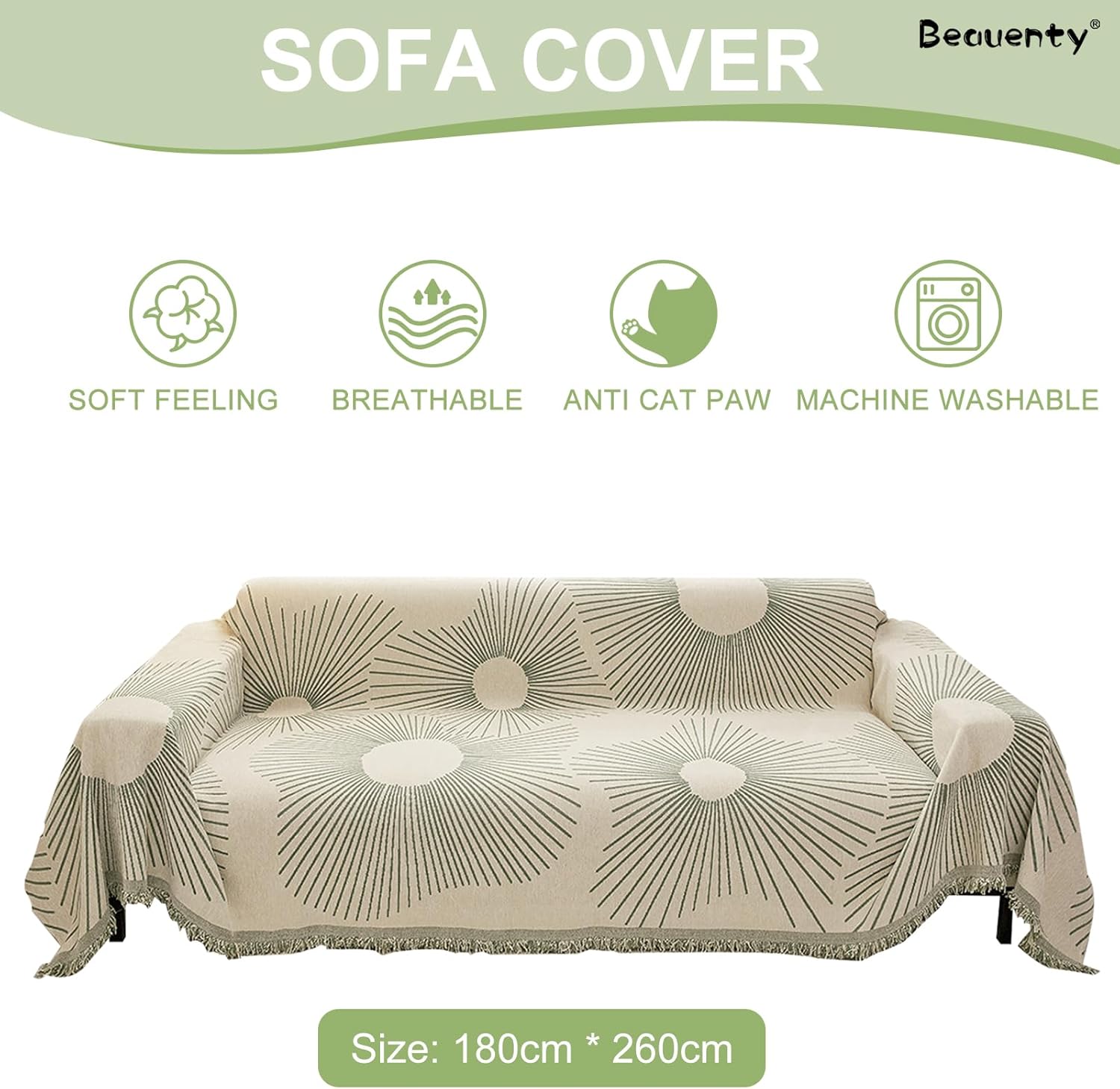 Beauenty Chenille Sofa Cover - Soft Double-Sided Couch Blanket with Fringe, Stylish and Washable Furniture Protector for Four Seasons - Sofa Cover for Couches, Sofas, and Living Room Décor (180*260)