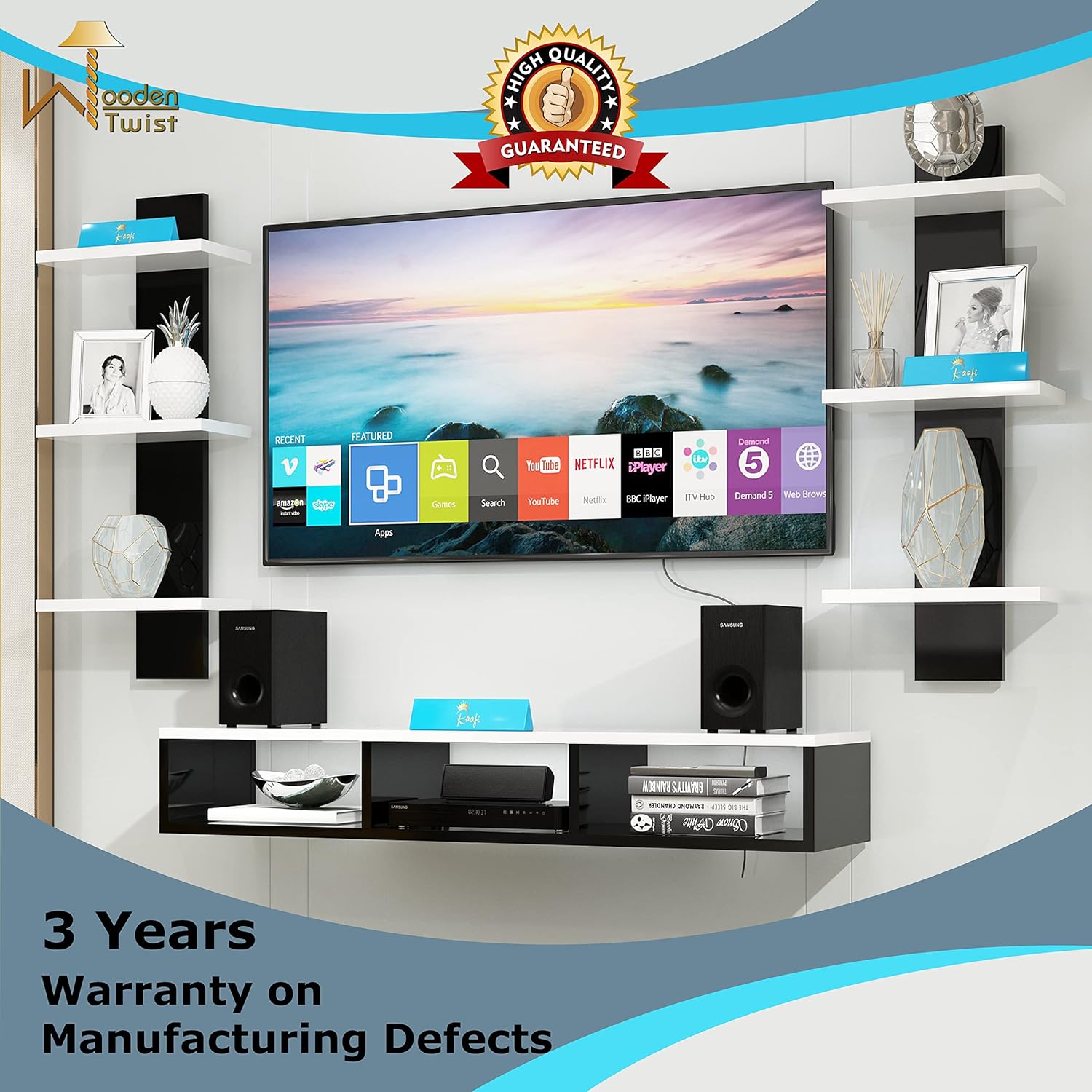 The Middle Compartment is Intended to Keep Your Set-Top Box While Books, Decorative Items & 4 Fully Functional Floating Open Shelves for Organize and Display Your Decorative Objects.