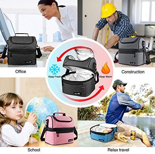 2 IN 1 - Dual compartments keep cold and warm items separate.On top with a wide open upper compartment easy to access,great for chips,fruit,drinks,snacks and cookies.Square bottom compartment used to carry lunch,sandwich,salad and etc.