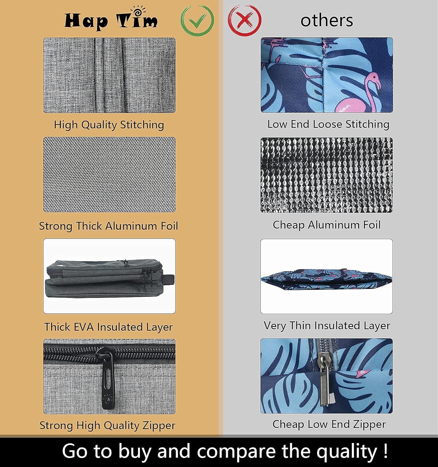 QUALITY GUARANTEE - All Hap Tim lunchbags are made of durable oxford fabric and thick aluminum inner lining to protect your foods. Stronger aluminum inner and thicker foam layer will guarantee to keep your food fresh longer. If any customer is not 100% SATISFIED with their purchase we will gladly offer a hassle-free refund or exchange.