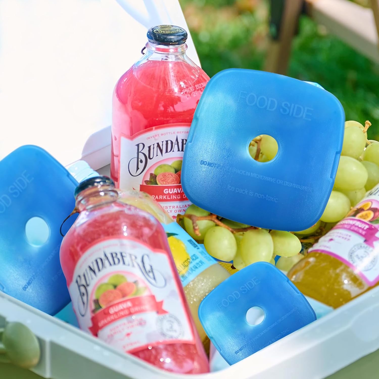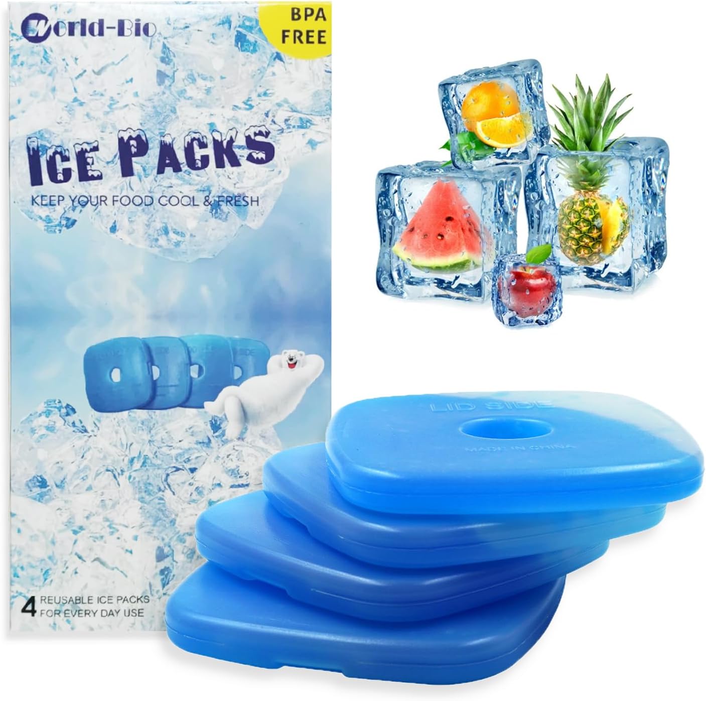 WORLD-BIO Ice Freezer Packs for Lunch Box Cooler, Reusable Cool Refreeze Blocks for Lunch Bags, Keeps Food Cold & Fresh - Ideal for Kids School Lunch Boxes, Office/Picnic Lunch Set of 4, Blue