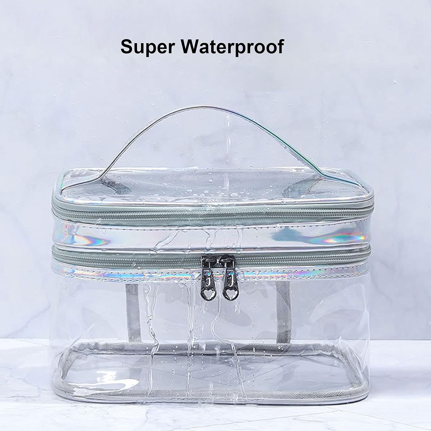 FIYUK Clear Cosmetic Bag Dual Layer Travel Toiletry Bags Make up Organizer Waterproof Brushes Holder