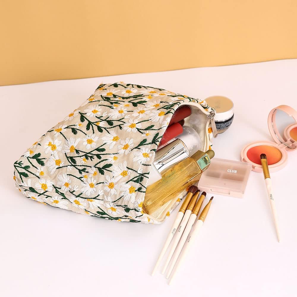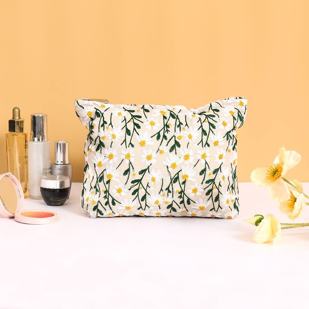 LYDZTION Creamy-white Daisy Makeup Bag Cosmetic Bag for Women,Large Ca – BUYO