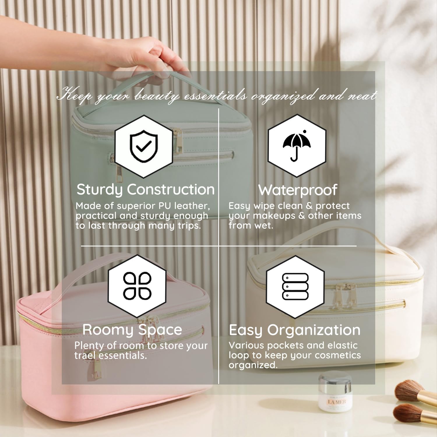 • Durable Construction for Long Lasting Use: Constructed of vegan leather with smooth zipper closures, this cosmetic bag is soft and durable. Water-resistant and stain-resistant features protect your makeups and other items from wet and hurt.