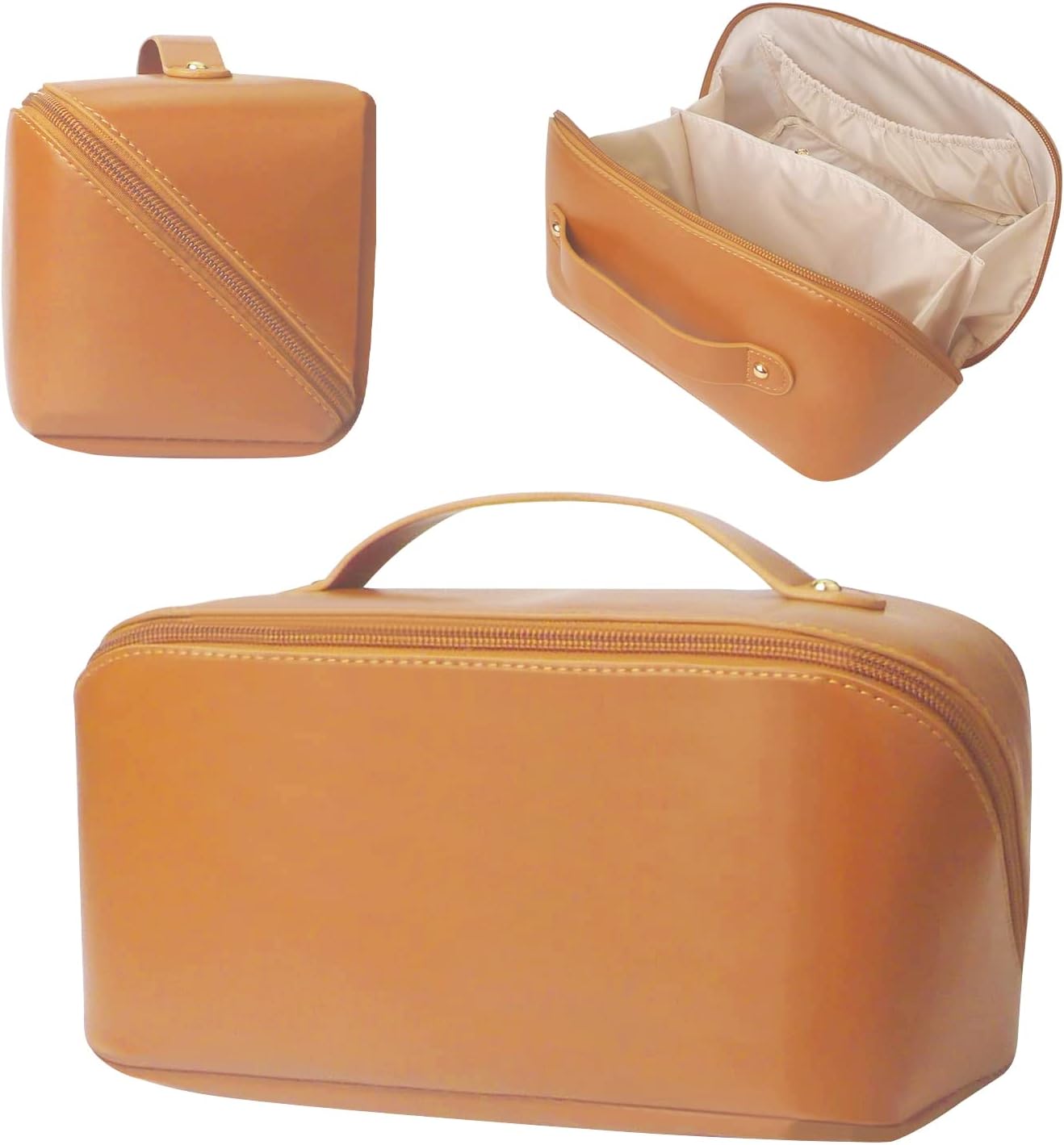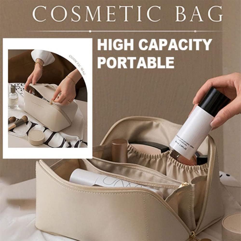 Tiokkss Large-Capacity Travel Cosmetic Bag | Leather Makeup Bag | Waterproof Portable Cosmetic Bag | Multifunctional Storage Makeup Bag | Travel Cosmetic Bag (White)