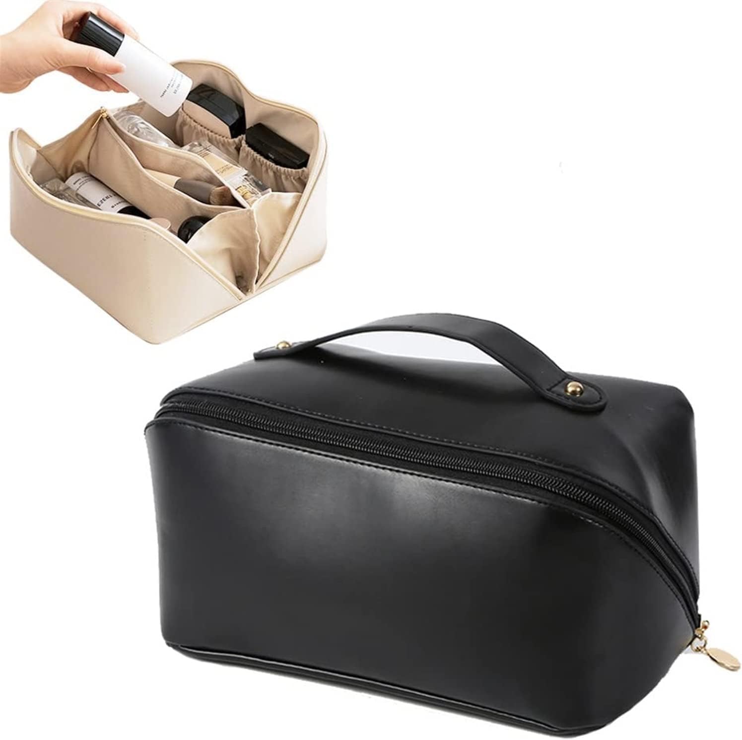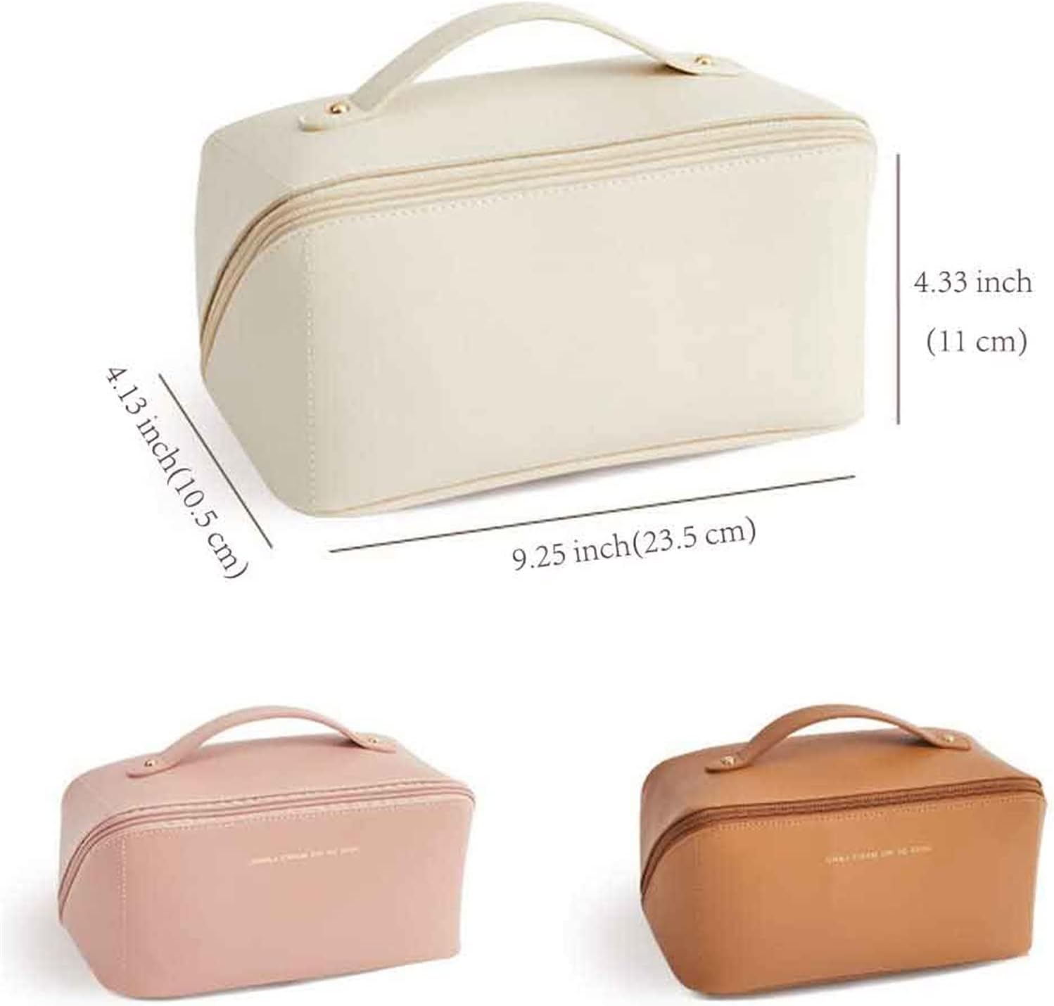 Large-Capacity Travel Cosmetic Bag Leather Makeup Bag Waterproof Portable Cosmetic Bag Toiletry Bag for Skincare Cosmetics Toiletries With Handle and Divider Specification: Material: PU Color: Black, White, Mocha, Sakura pink, Sky blue, Sunset pink Size: 9.25*4.13*4.33 inch(23.5*10.5*11 cm) Package Includes: 1Pcs - Large-capacity Travel Cosmetic Bag Warm Tip: Dear buyer, due to the lighting effect, monitor's brightness, manual measurement, etc., there could be some slight differences in the color and size between the photo and the actual item. Sincerely hope that you can understand! Thank you!.
