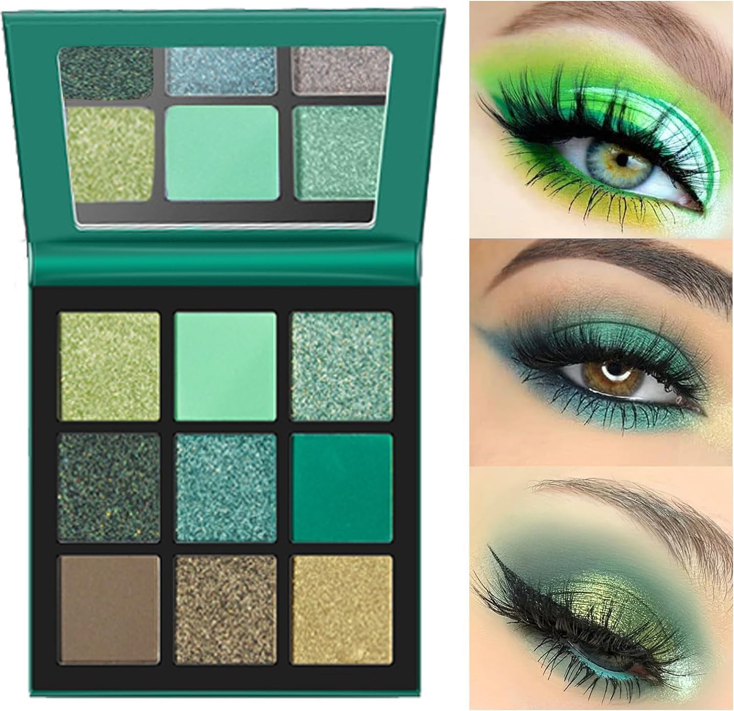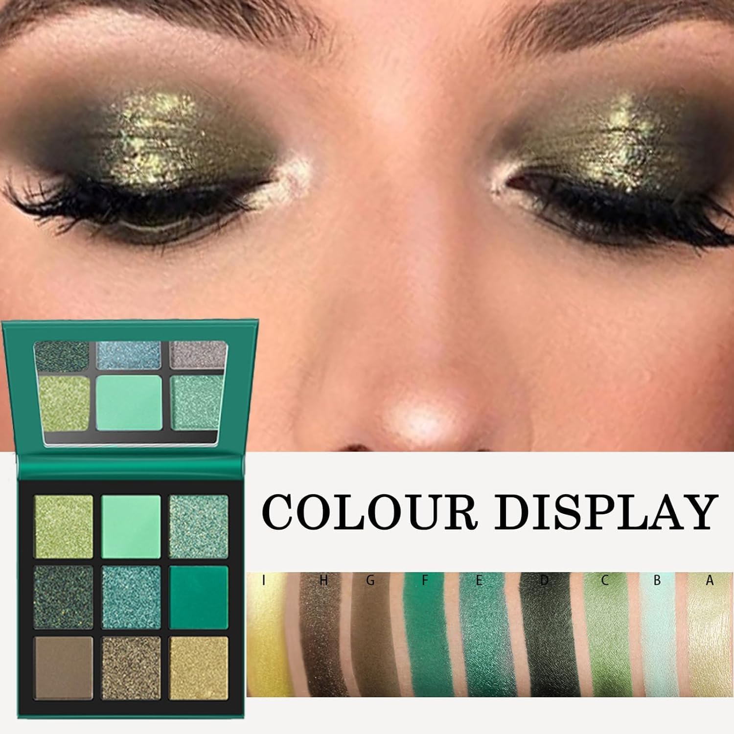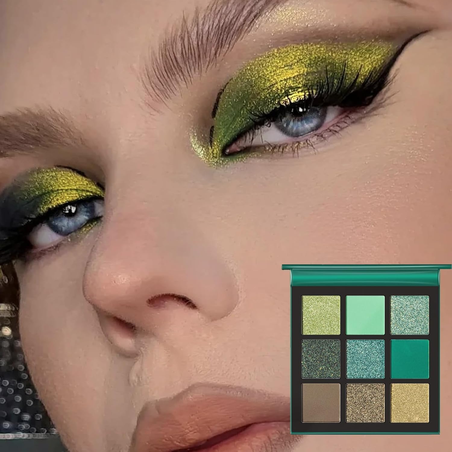 Eyeshadow Palette, Green 9 Colours Shimmer Eye Shadow Palette, Matte and Glitter Eyeshadow Make Up Palettes Waterproof Highly Pigmented Light Green Shiny Yellow